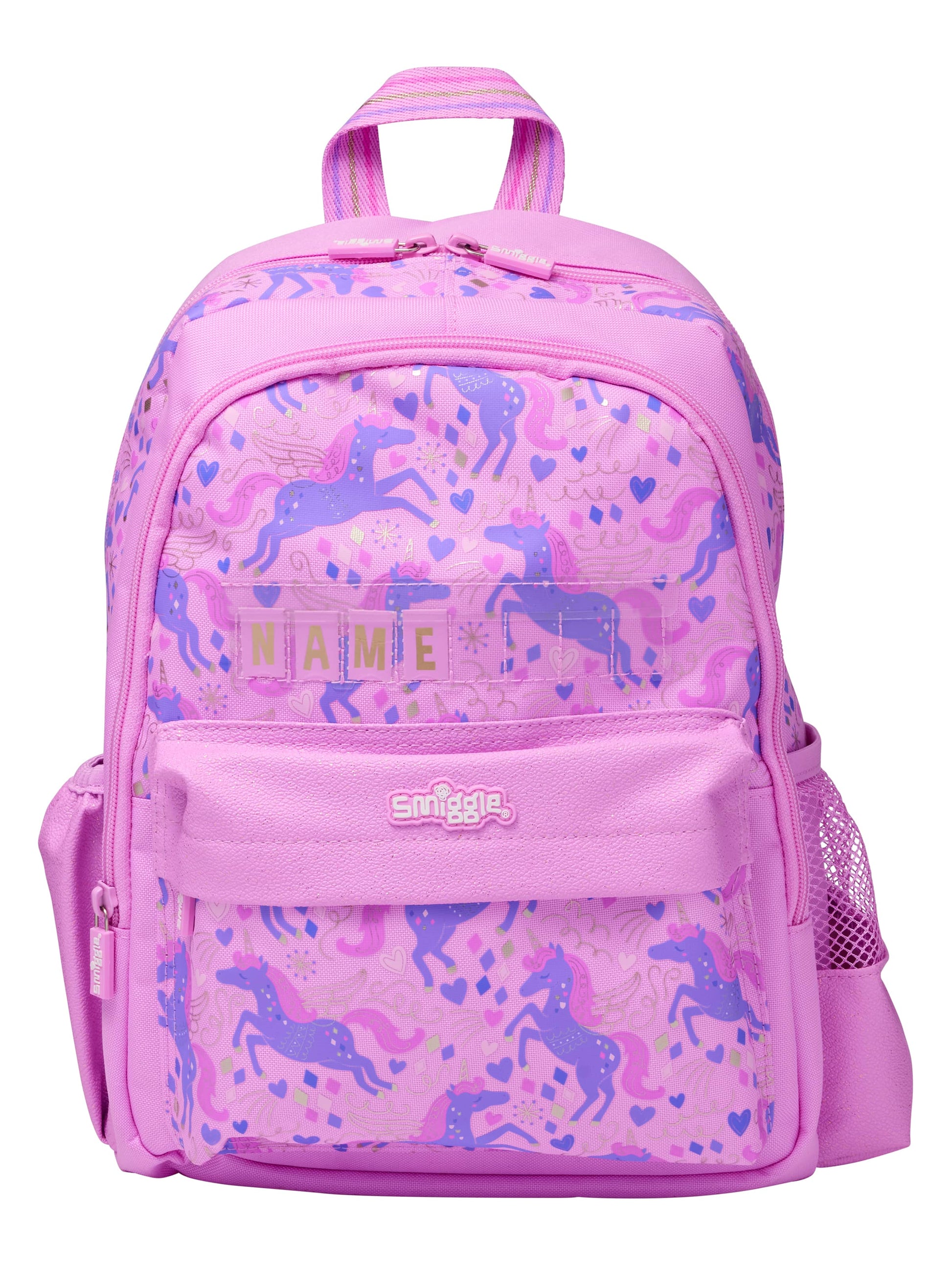 Our Adventurous Junior Backpack is the perfect pick for all preschool Smigglers! It features 3 spacious zipped compartments for stacks of essentials, plus two drink bottles sleeves and comfy adjustable padded straps. Adventures are easy with the fun graphic print that makes this design pop! Customise their backpack with the included 54 perforated letter labels to display in the clear front pockets.