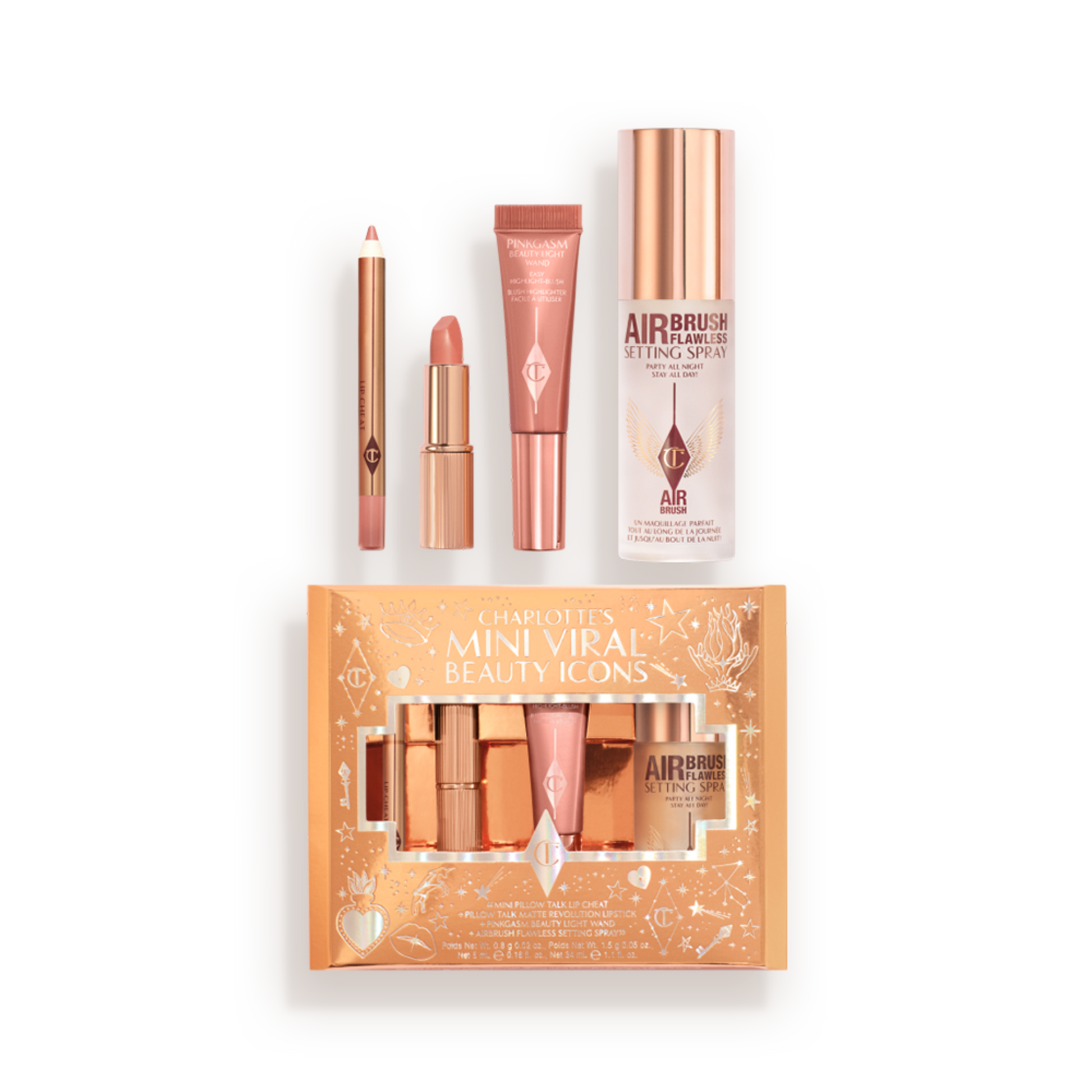 Includes 4 best-selling icons – my social media sensation Beauty Light Wand in Pinkgasm, a travel-size AIRbrush Flawless Setting Spray, a mini Pillow Talk Matte Revolution lipstick and a mini Pillow Talk Lip Cheat. It's all my legendary beauty secrets, perfectly packaged together for the look of your dreams!