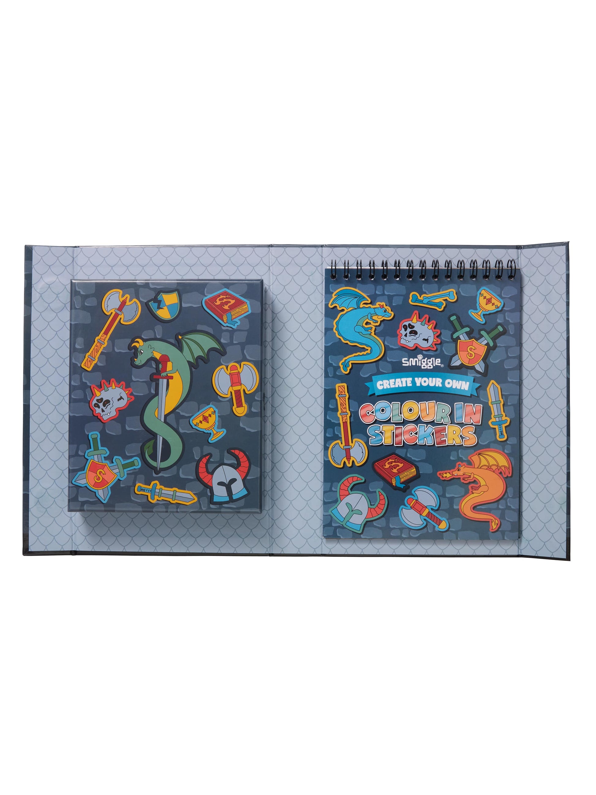 Colour in and create unique stickers with our Colour In Stickers Book Activity Box! Comes with 200+ colour-in stickers, 3 glitter sticker sheets and 10 markers so they can create their own stickers.