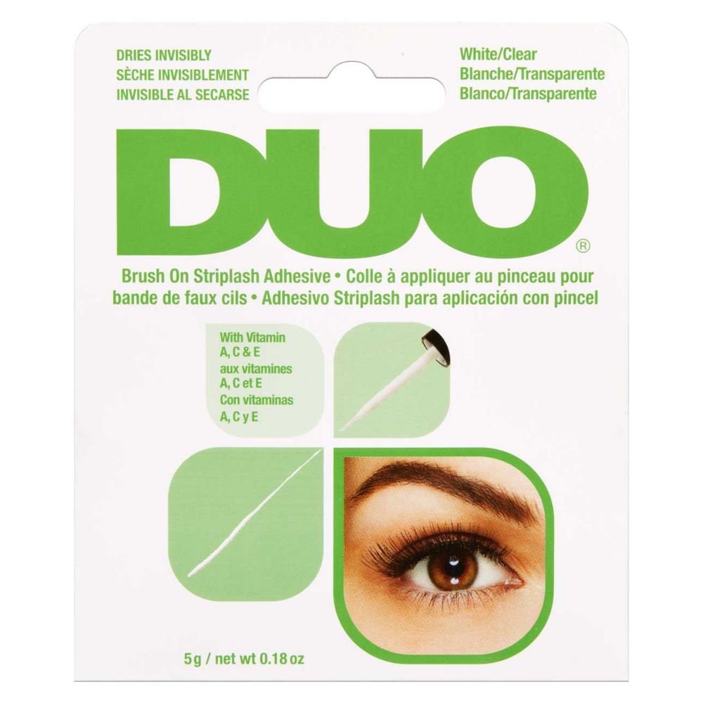New Brush On adhesive comes with an ultra-thin brush for precise, quick application of both strip and individual lashes for all-day wear. This latex-free formula is safe for contact lens wearers and sensitive eyes. Lashes have never been easier.