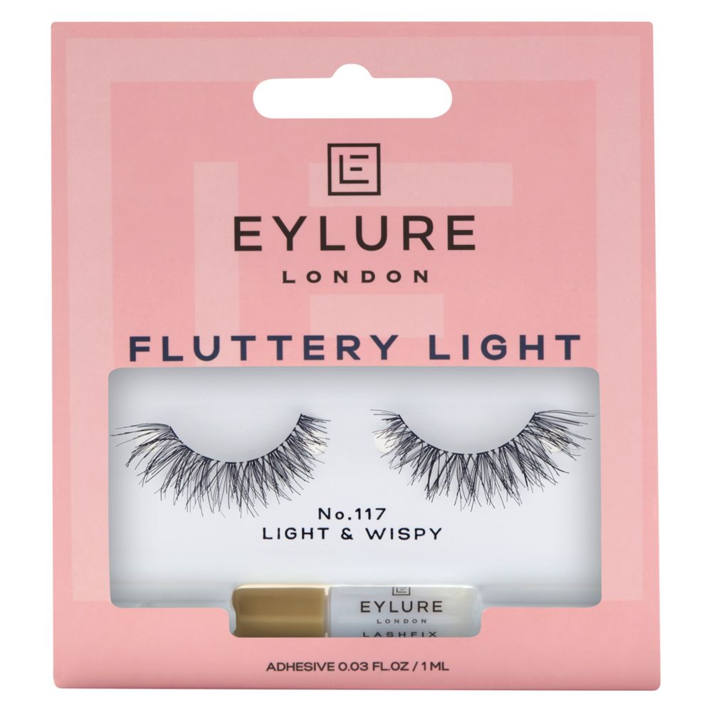 Eylure Fluttery Light No. 117 is a long, angled style with a twisty, messed up finish will give you that extra bit of length and thickness desired to enhance the natural beauty of your eyes. Handmade and reusable for up to 5 wears, every lash pack also comes with our latex free lash glue that is guaranteed to last up to 18 hours.