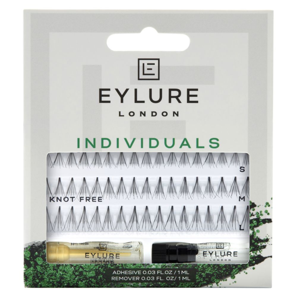 Eylure Knot-Free Individuals lashes are semi-permanent flared lash pieces. Use a few at the corners of the eye for a subtle look or as many as you dare for super-full lashes! This style has no ‘knots’ at the narrow end of the lash so the finish is even more natural. This kit contains short, medium and long length flares. For a timeless elongated look to the eye, start with shorter length on the inner eye, ending with medium or long length on the ends. This kit contains glue, the lashes can easily be removed with remover.
