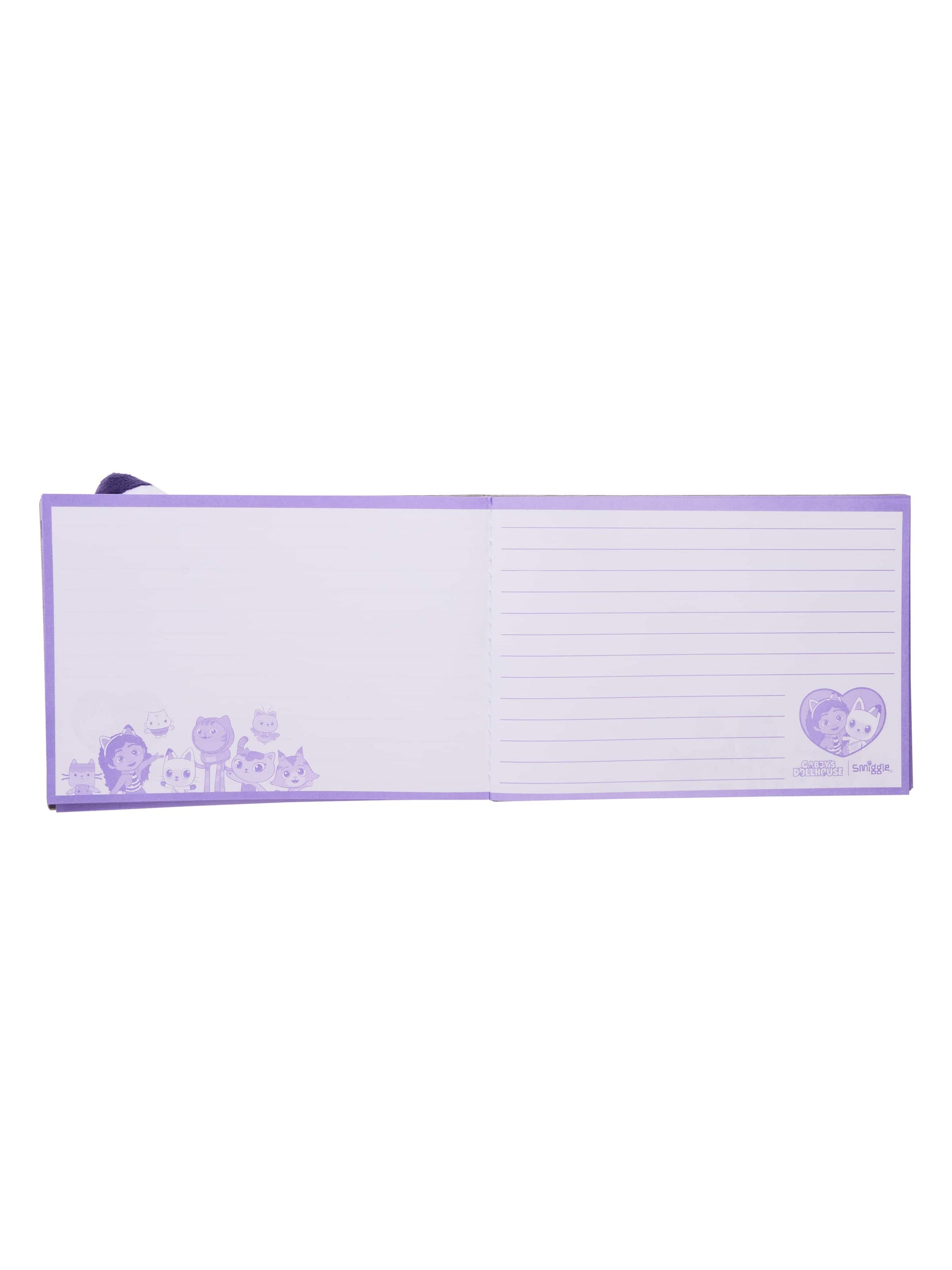 Write, draw and create with our Gabby's Dollhouse A5 Notebook. This sparkly notebook features Gabby and her best friend Pandy on the front cover and the rest of the Gabby cats on the back. Plus, it has 3D applique ears to match Gabby and Pandy and a super glittery fabrication! Open up to find lined pages that await stories to be written, drawings to be illustrated and more!