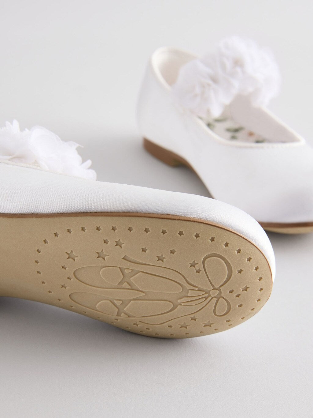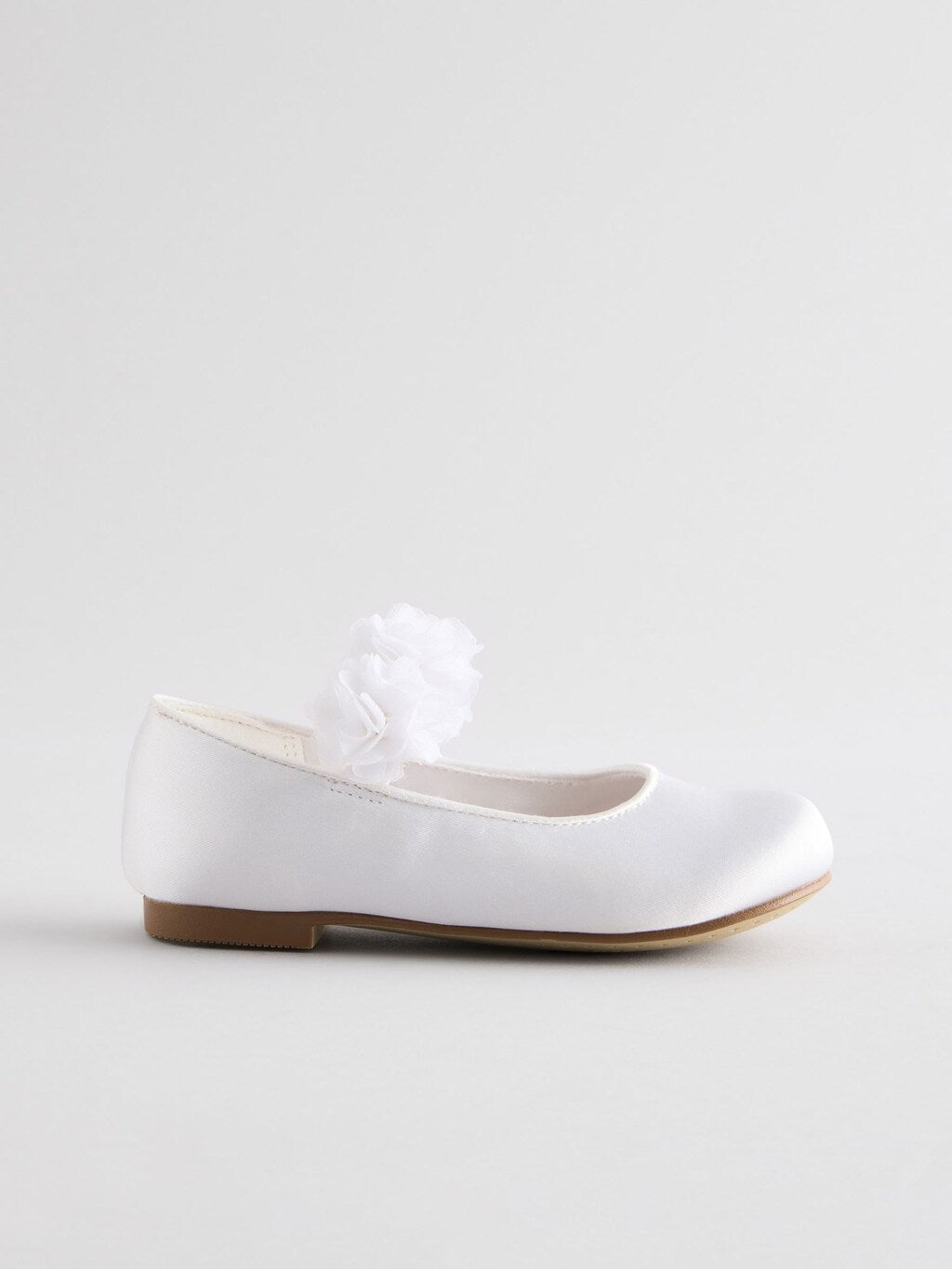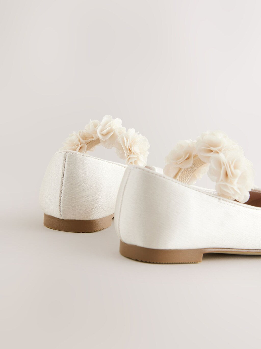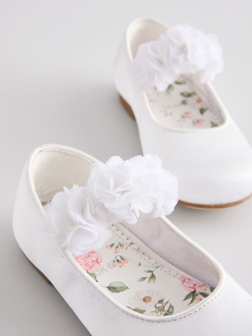 A tasteful finishing touch for wedding outfits, these gorgeous ivory white Mary Jane shoes have a smooth satin upper with corsage detailing to the elasticated strap, finished with a textile lining and a durable slip outsole.
