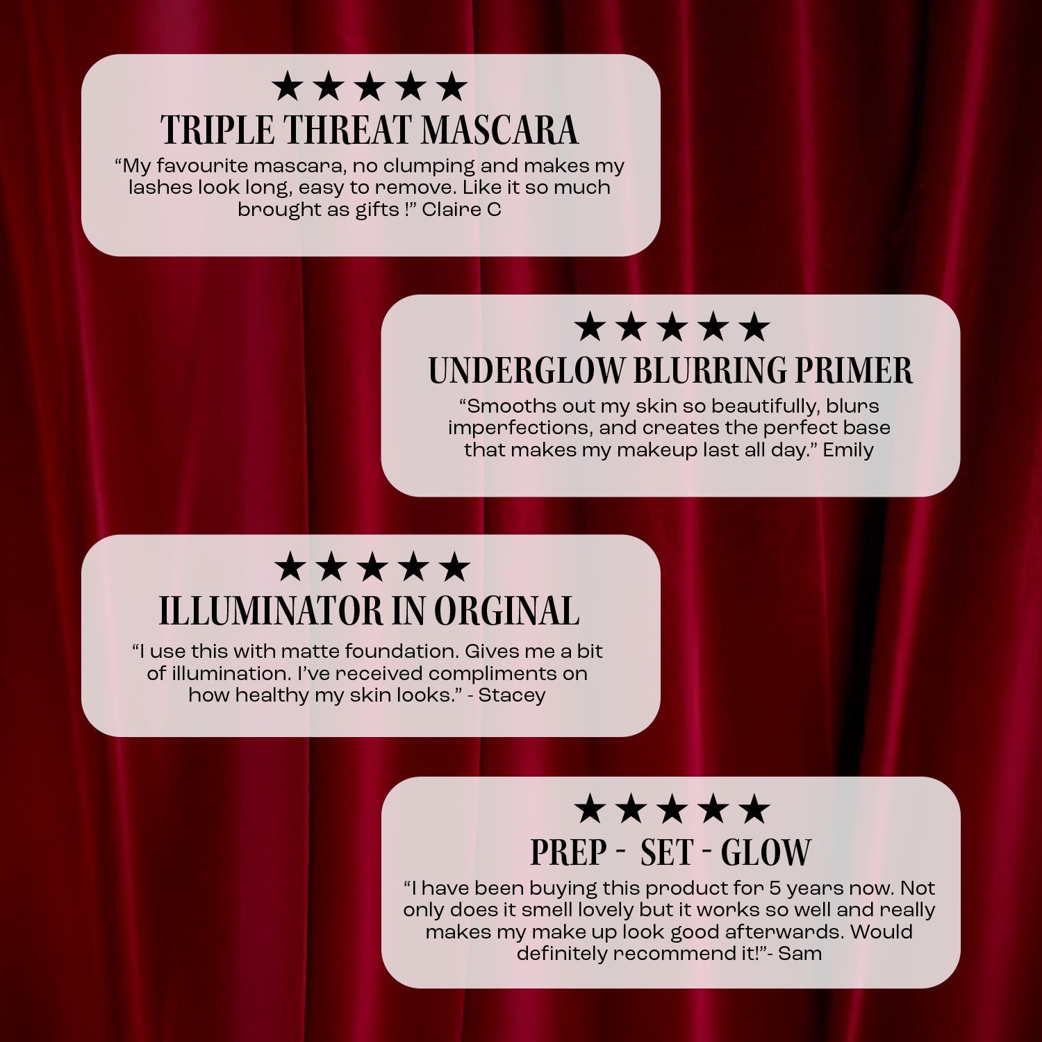 The Glowy Icon Gift Set is your everyday, everywhere makeup wardrobe – a luxury lineup of six ICONIC favourites designed to glow through the season and beyond. From luminous skin to shimmering eyes, fluttery lashes and glossy nude lips, it’s everything you need to create soft-glam makeup moments in one effortless edit. Whether it’s for party prep, a thoughtful gift, or an upgrade to your everyday routine, this set delivers polish, radiance and a little festive magic.