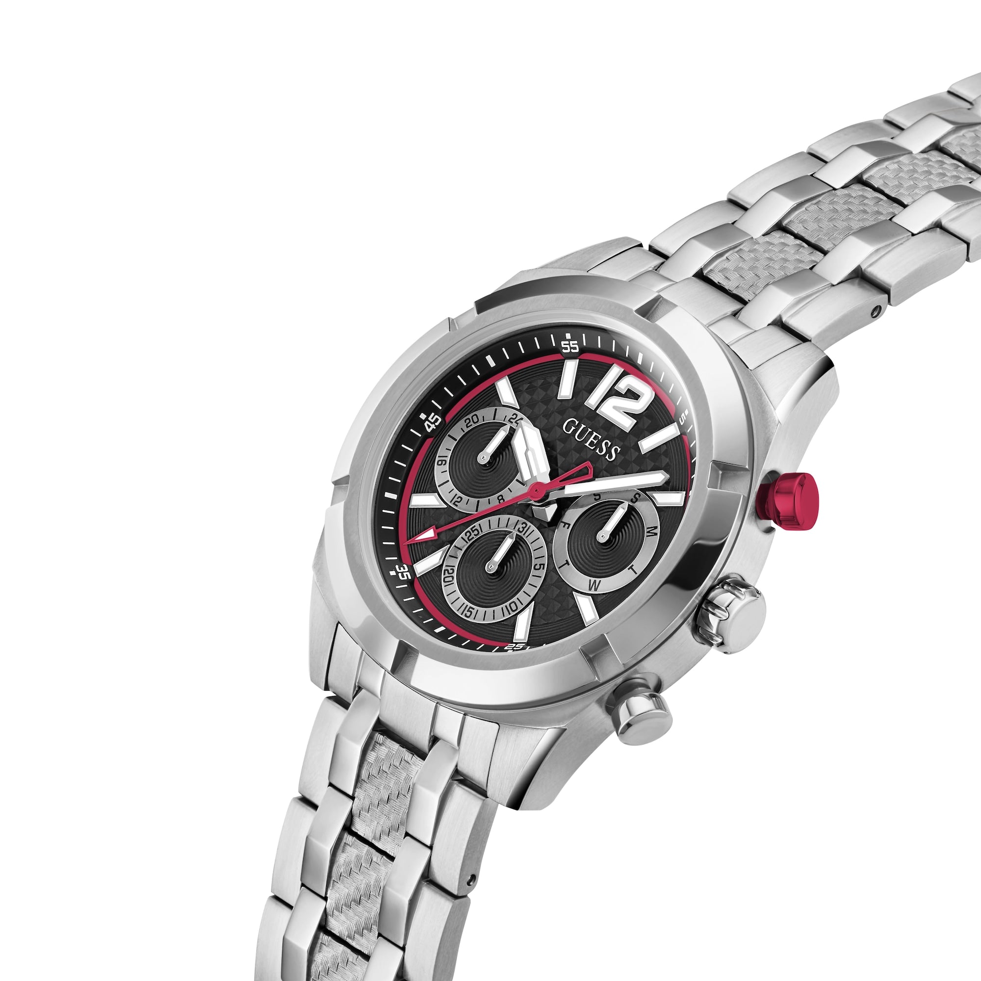 Men's Red Accents Stainless Steel Bracelet Watch