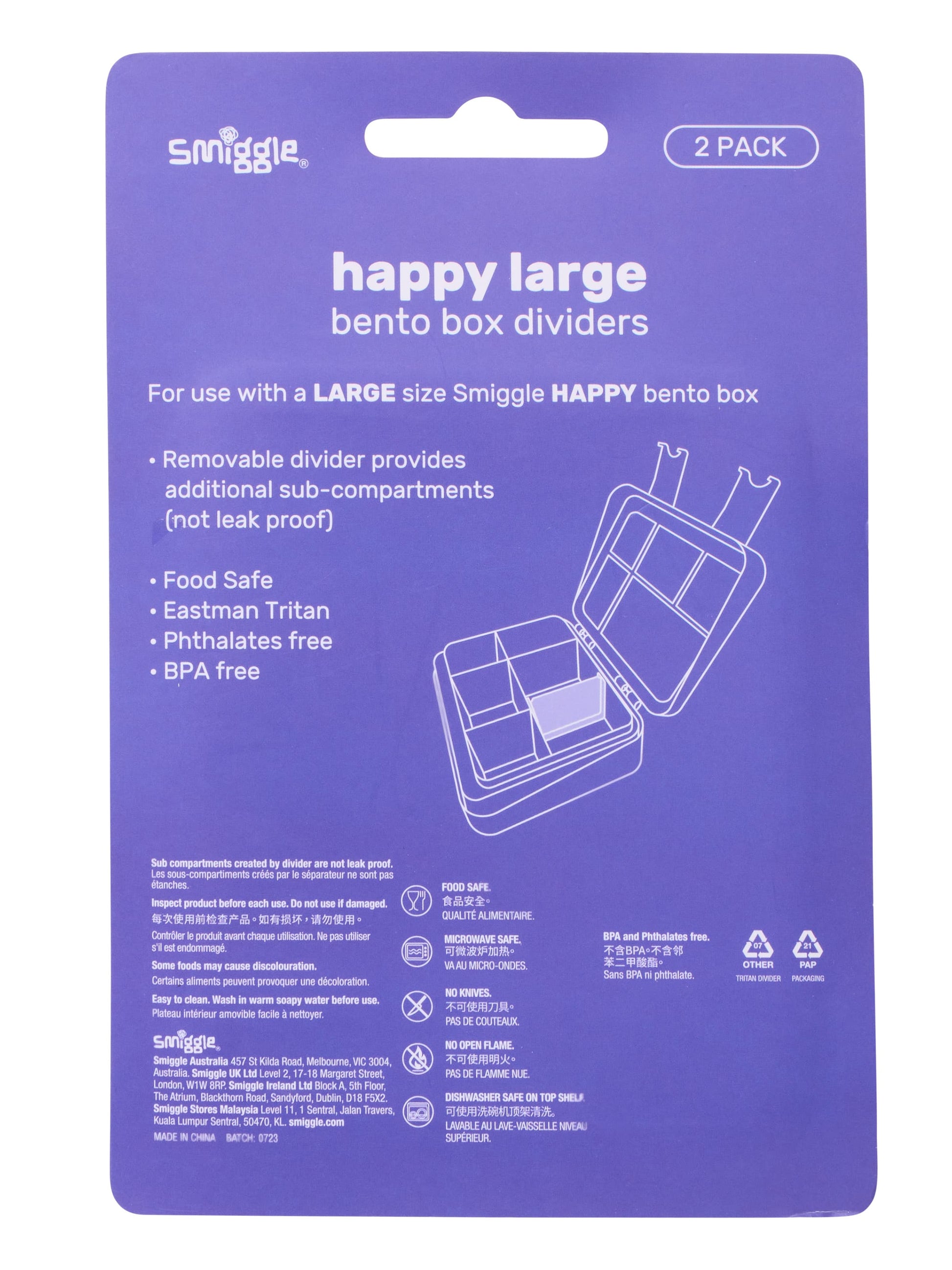 Lost a bento divider? Replace it with our Happy Bento Lunchbox Dividers! Specifically designed for our Happy Bento Lunchboxes. Each pack comes with two dividers and has a clear design.