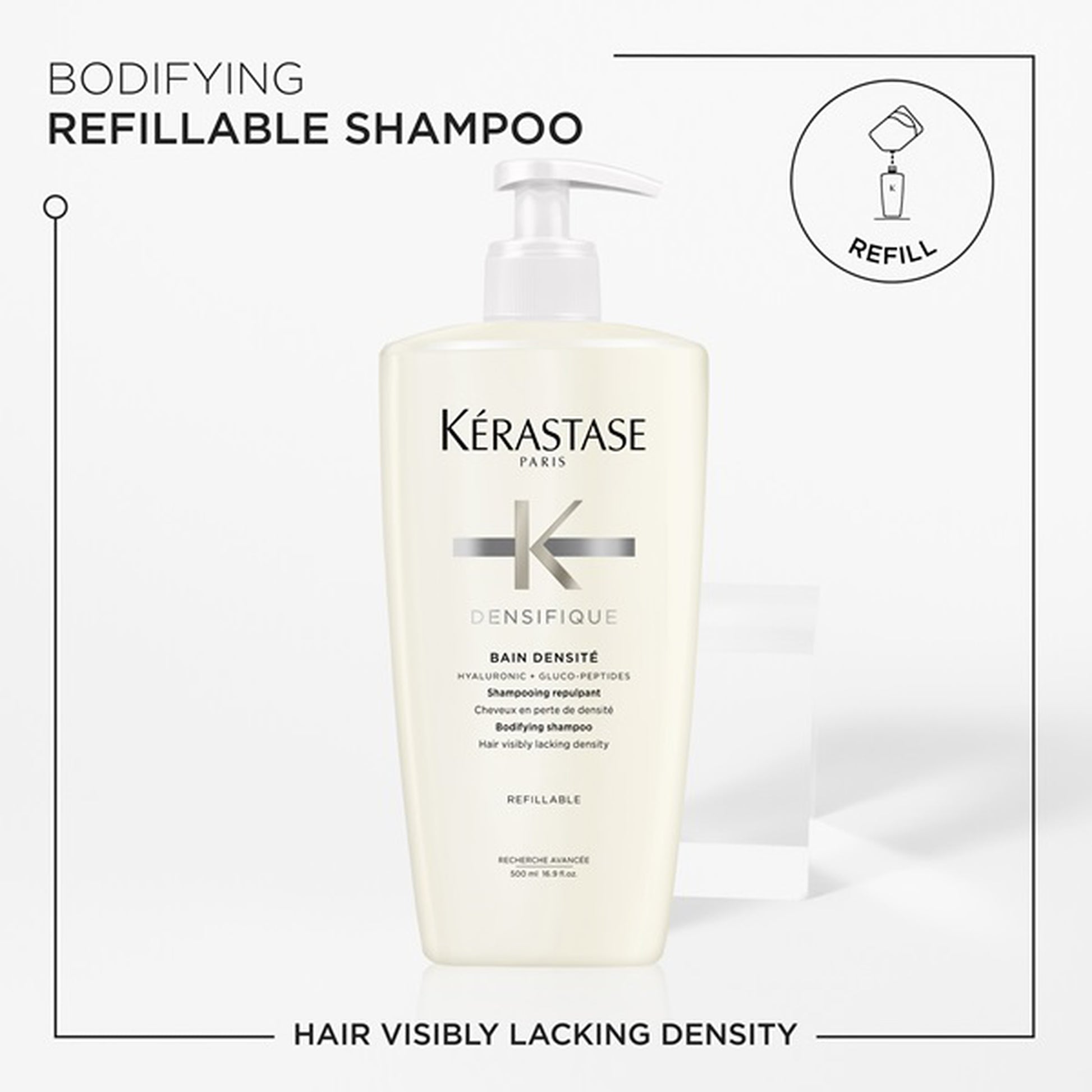 This daily shampoo is designed for hair fiber experiencing loss of density. Bain Densité strengthens the hair at the fiber and awakens dormant follicles to give more texture, substance and resilience to the hair. Body and bounce are restored for hair that appears visibly fuller and thicker-looking.