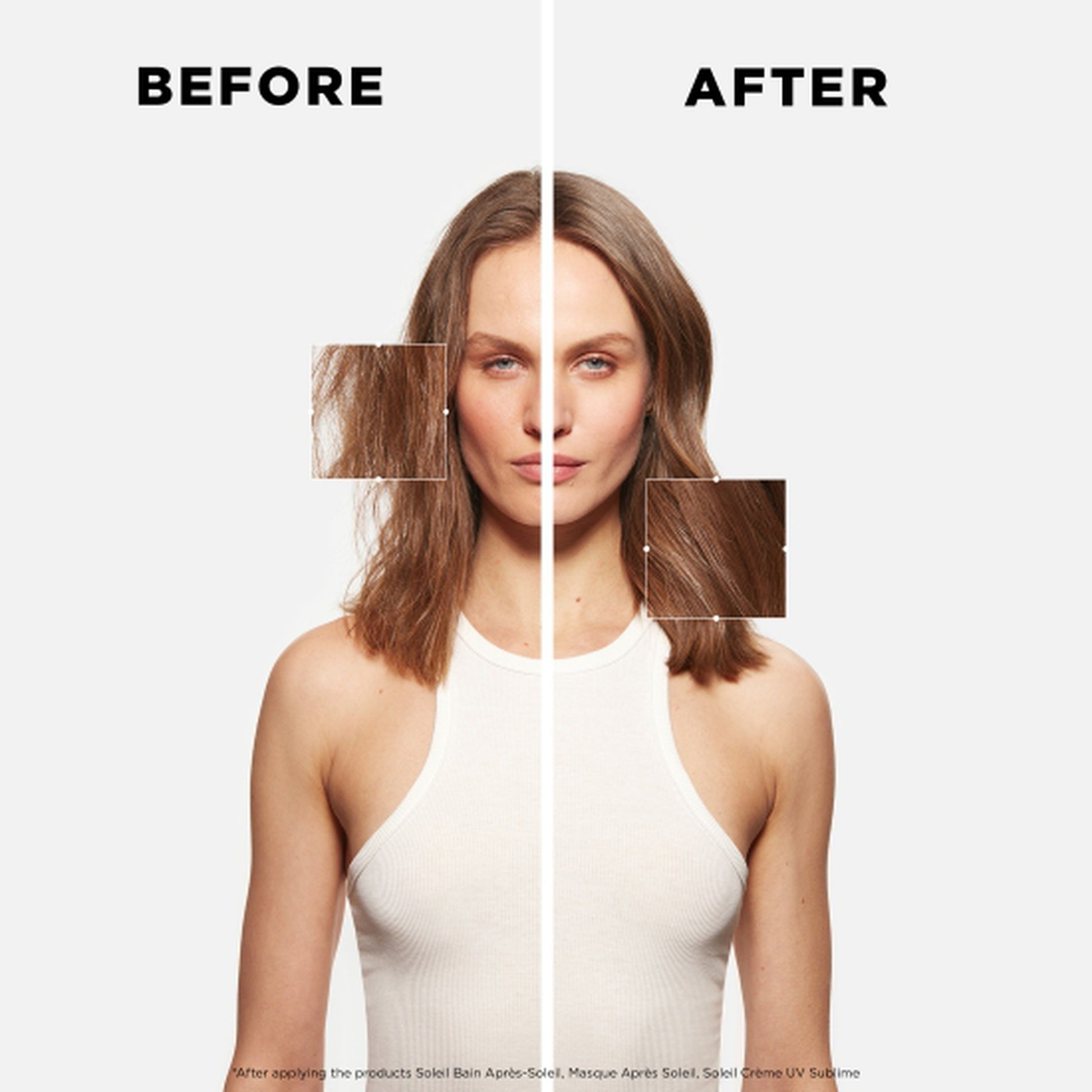 After-sun shampoo enriched with coconut water gently removes chlorine, salt and sand residues, helping to cleanse hair from their drying effects. On wet hair, the translucent gel lathers to purify the scalp and lengths for a hydrating effect. Hair is hydrated through the lengths for instantly refreshed, luminous and smooth locks. The sensual fragrance of jasmine combined with solar tuberose notes create an addictive silage for summer time.