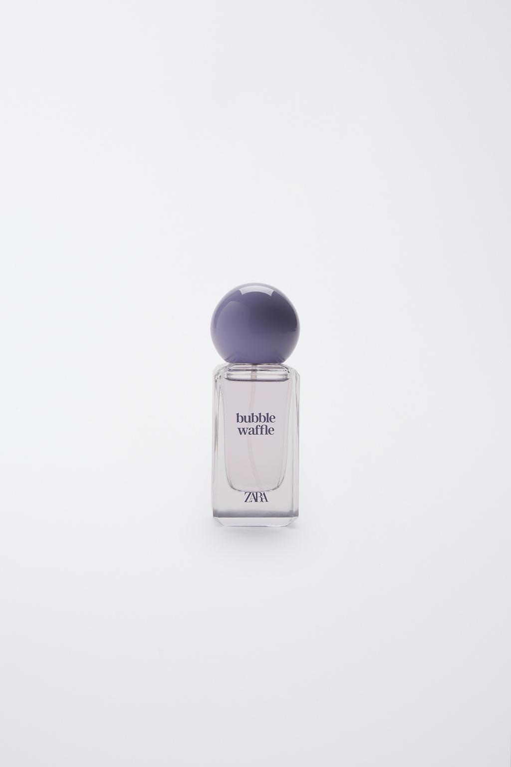 Gourmand amber eau de toilette. A fragrance inspired by the world of sweets, ZARA BUBBLE wAFFLE, plays with olfactory notes such as sweet waffle with whipped cream, vanilla and refreshing coconut to create a unique and charming essence.