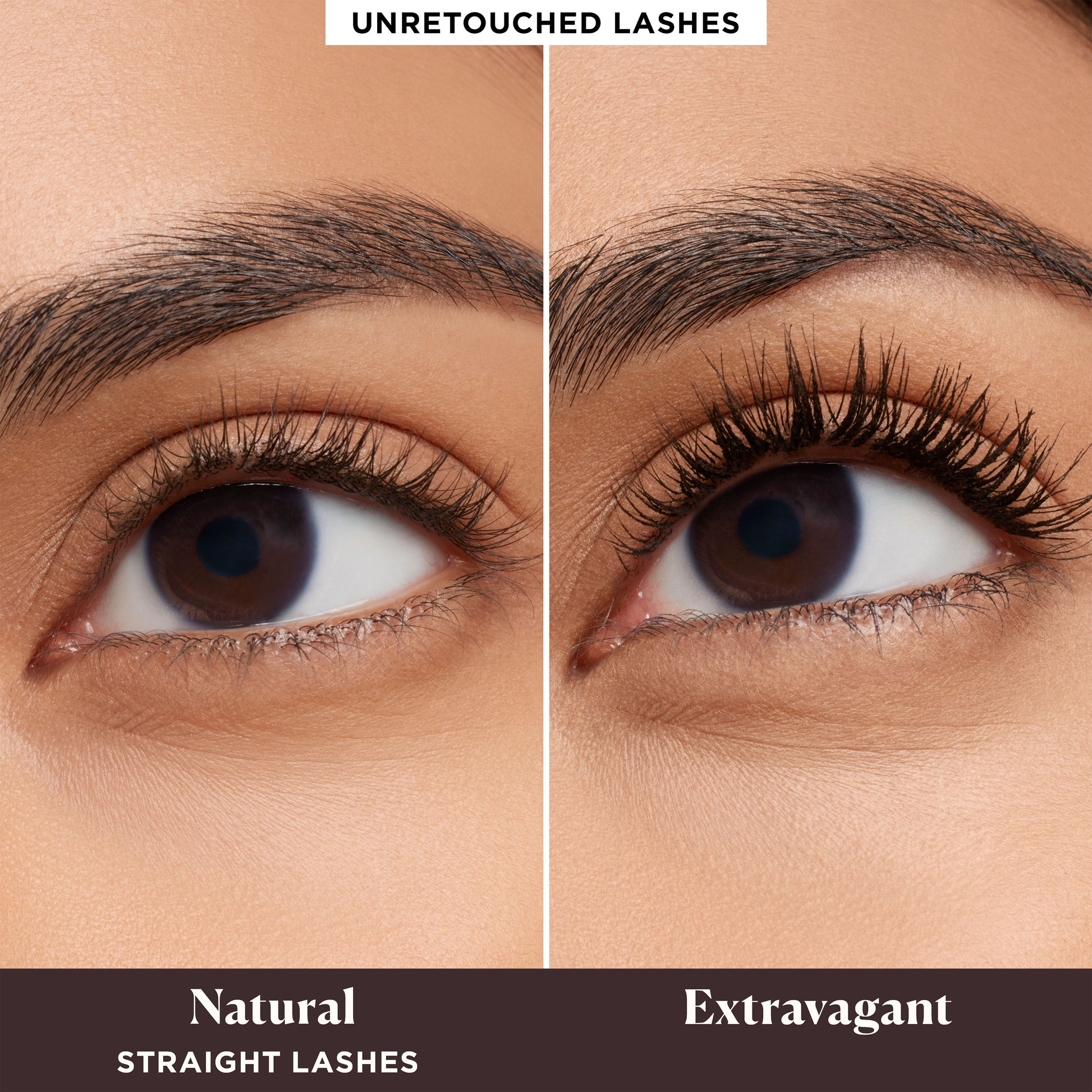 The ultimate, extravagant effect mascara delivers instant 2X Volume & Length, 3X Curl & Lift, and 24HR buildable wear while strengthening lashes from day to night. Intense black formula can be layered without flaking for extravagant volume & lift. The artist inspired, unique clover shape brush grips lashes from root to tip seperating and defining while conditioning ingredients visibily promote lash strength over time for smudge and transfer proof wear.