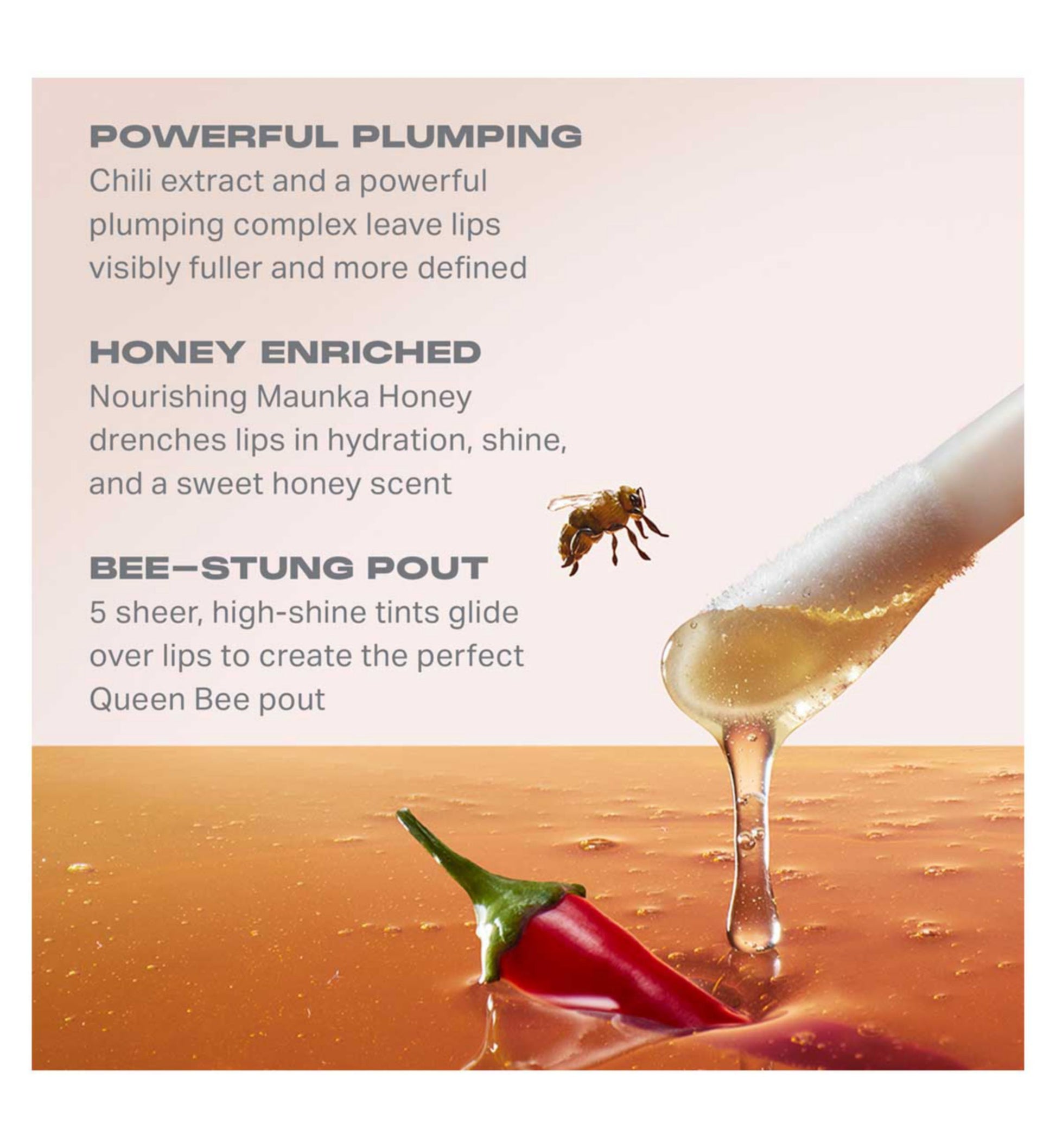 Give your lips a powerful bee-stung plump with this deeply hydrating oil infused with Manuka honey, a powerful plumping complex, and chili extract for a tingling, warming sensation.