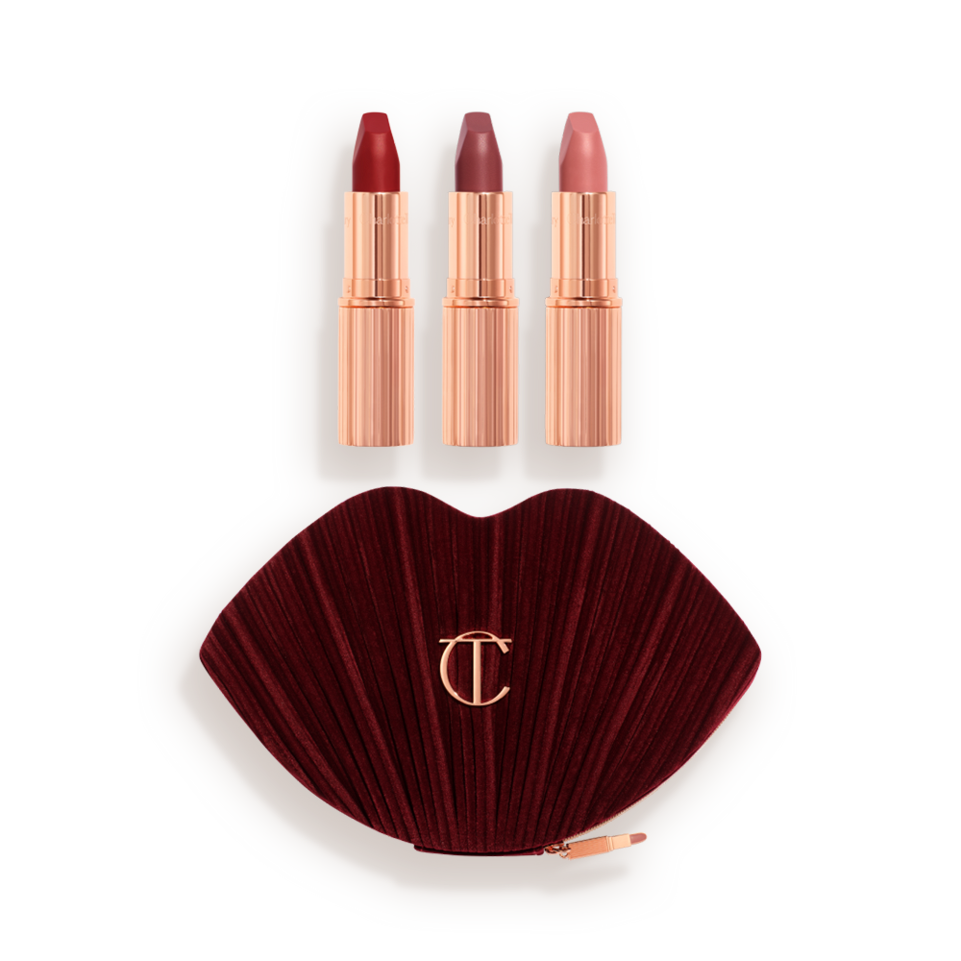 Iconic lipstick trio + an exclusive, limited-edition Hot Lips makeup bag.