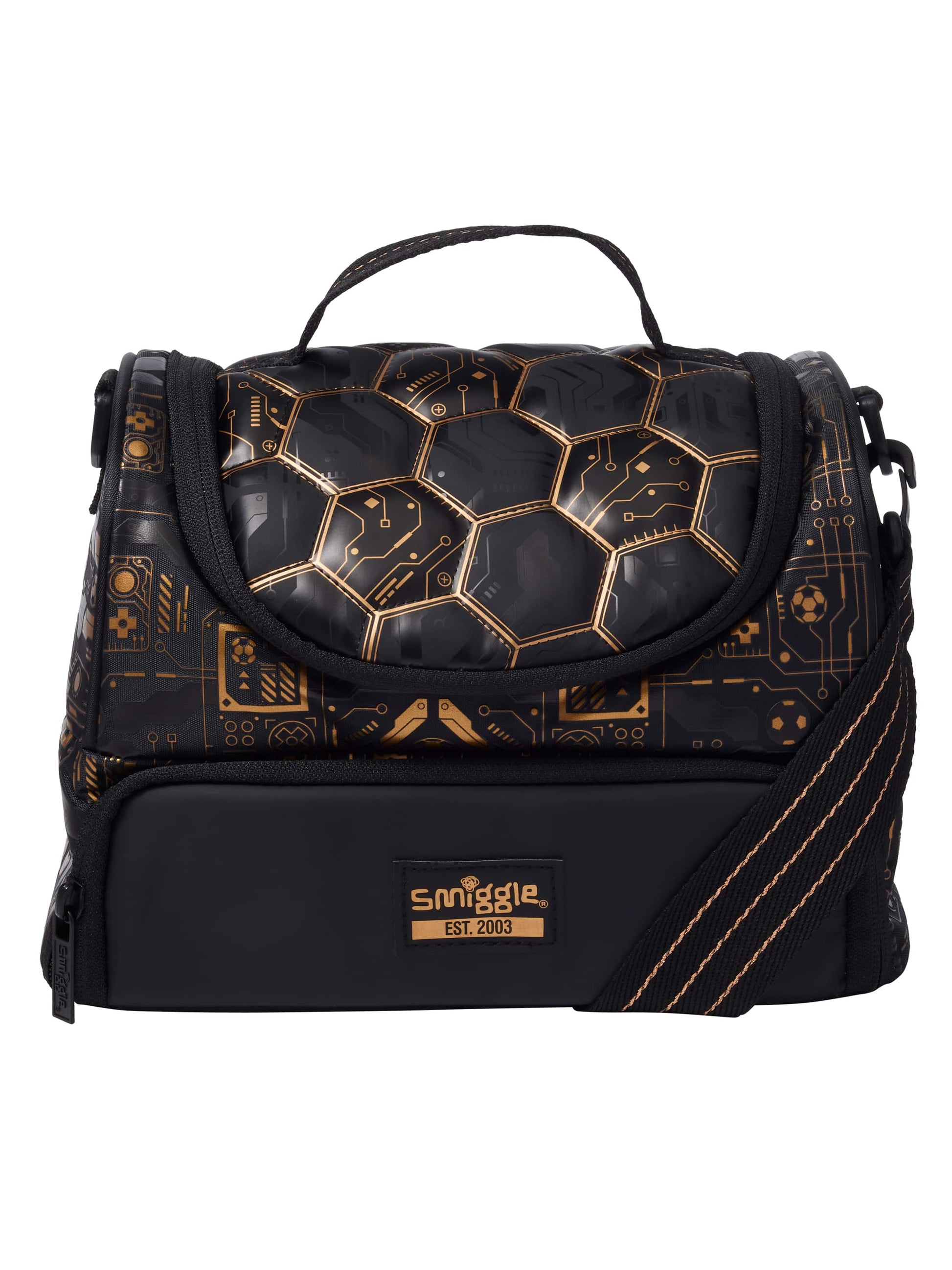 Take lunchtime style to the next level with our Livewire Large Double Lunchbox With Strap! This lunchbox comes with all our classic features of our Double Lunchbox but with extra space and a handy carry strap. The bottom compartment perfectly fits our Large Bento Lunchbox, plus it has a quilted football-printed front pocket and futuristic sports print.