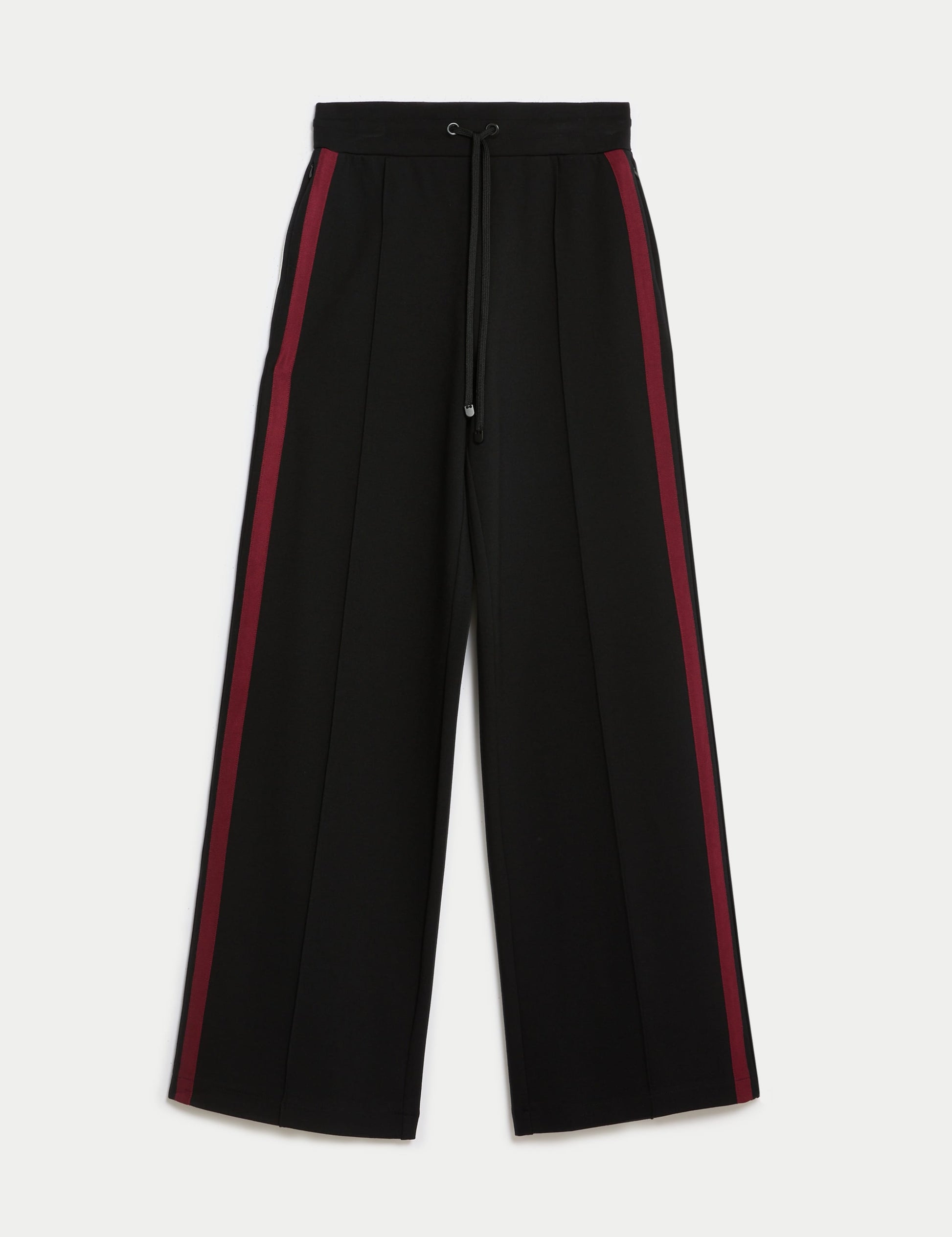 These jersey trousers create an easy way to try out the wide-leg trend. They're made to a standard fit and feature an elasticated drawstring waist so you can find your comfort. Side stripes add a sporty touch, while zipped front pockets offer space for your bits and bobs. Added stretch in the fabric ensures a flexible feel. M&S Collection: easy-to-wear wardrobe staples that combine classic and contemporary styles.