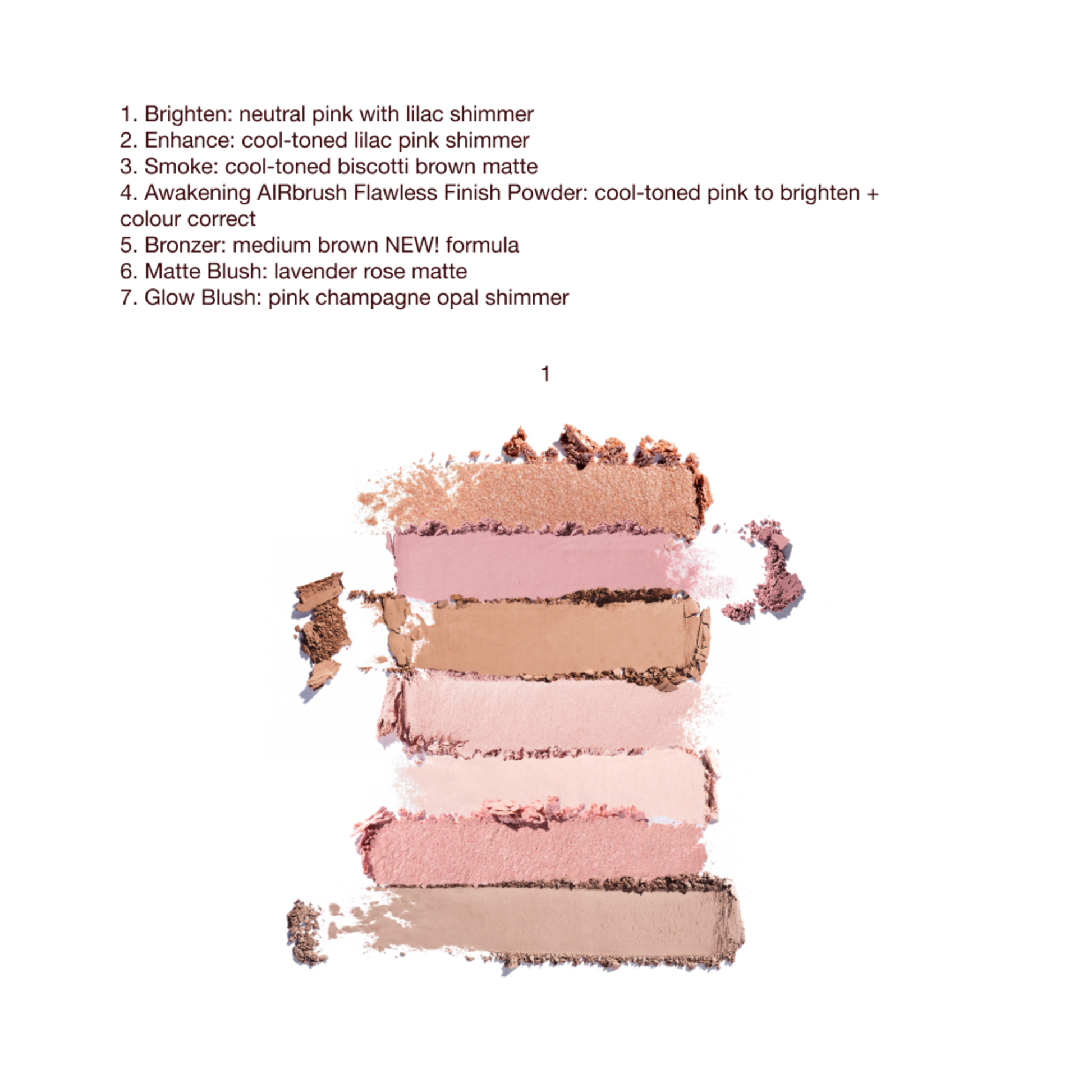 - AWAKENING AIRBRUSH FLAWLESS FINISH POWDER: As seen in my Pillow Talk Beauty Soulmates Palette! The same award-winning formula as my AIRbrush Flawless Finish powder in a colour-correcting tone! It smooths, blurs and perfects the appearance of skin for an even, flawless, poreless looking finish.