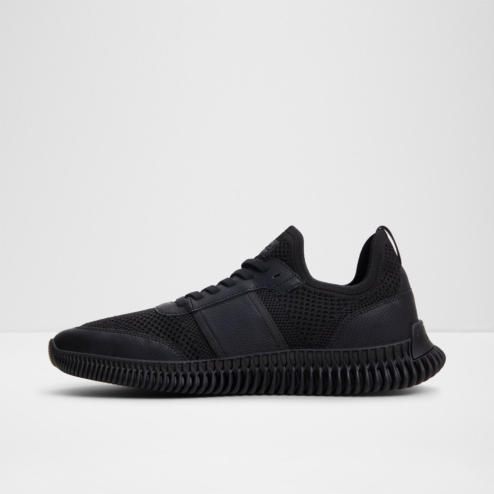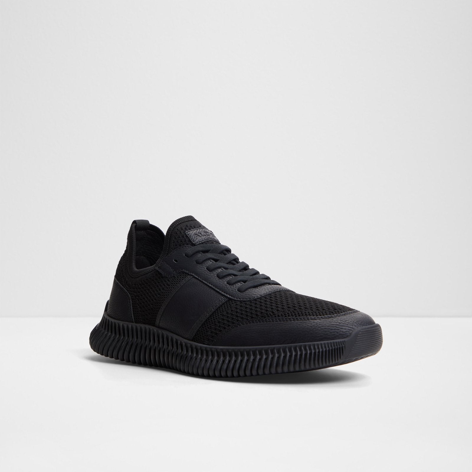 These black knit men's trainers offer a sleek, breathable design with a modern, sporty feel, providing both style and comfort for everyday wear.