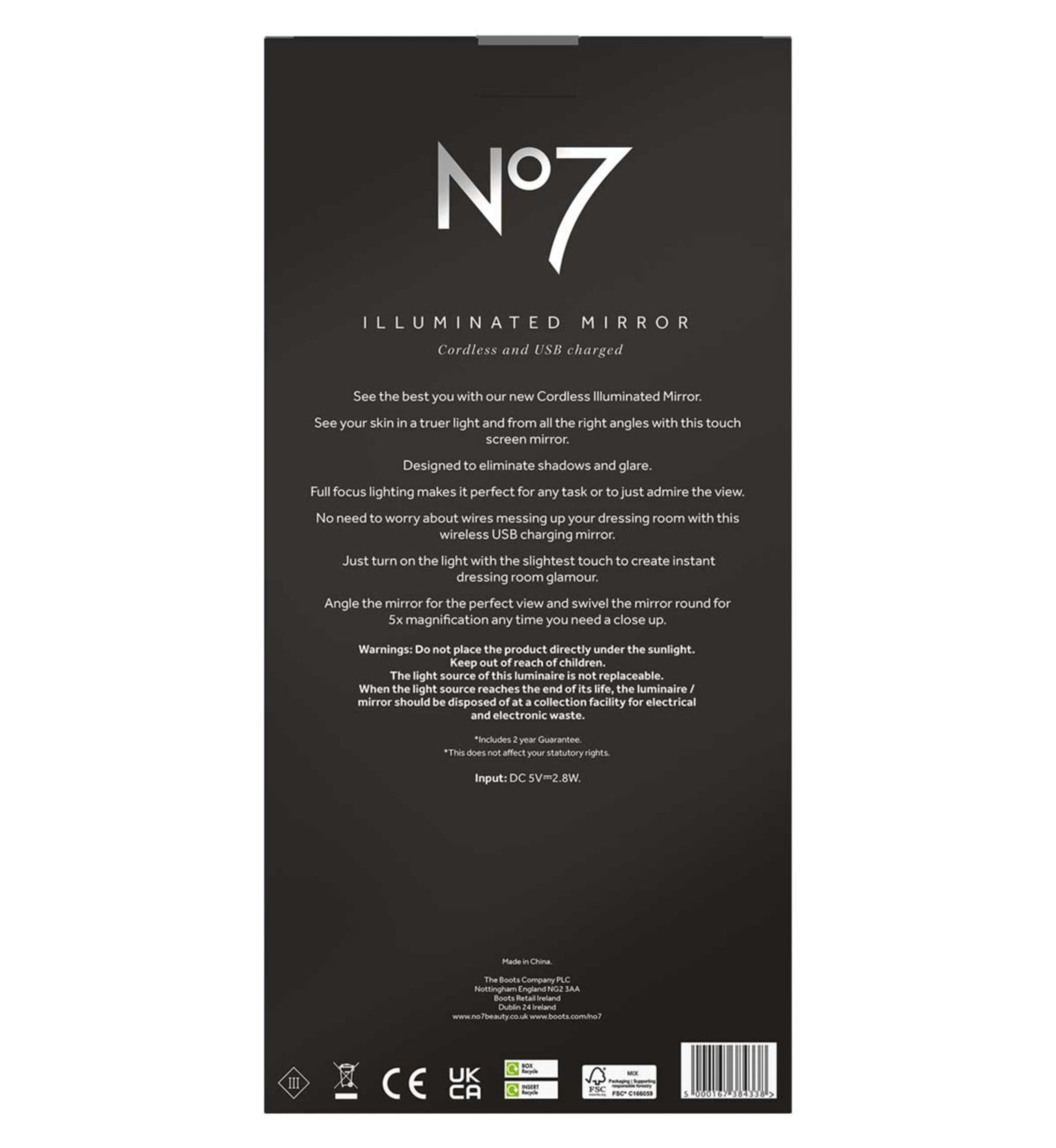 No need to worry about wires messing up your dressing room with this wireless USB charging mirror. Just turn on the light with the slightest touch to create instant dressing room glamour. Angle the mirror for the perfect view and swivel the mirror round for 5x magnification any time you need a close up.