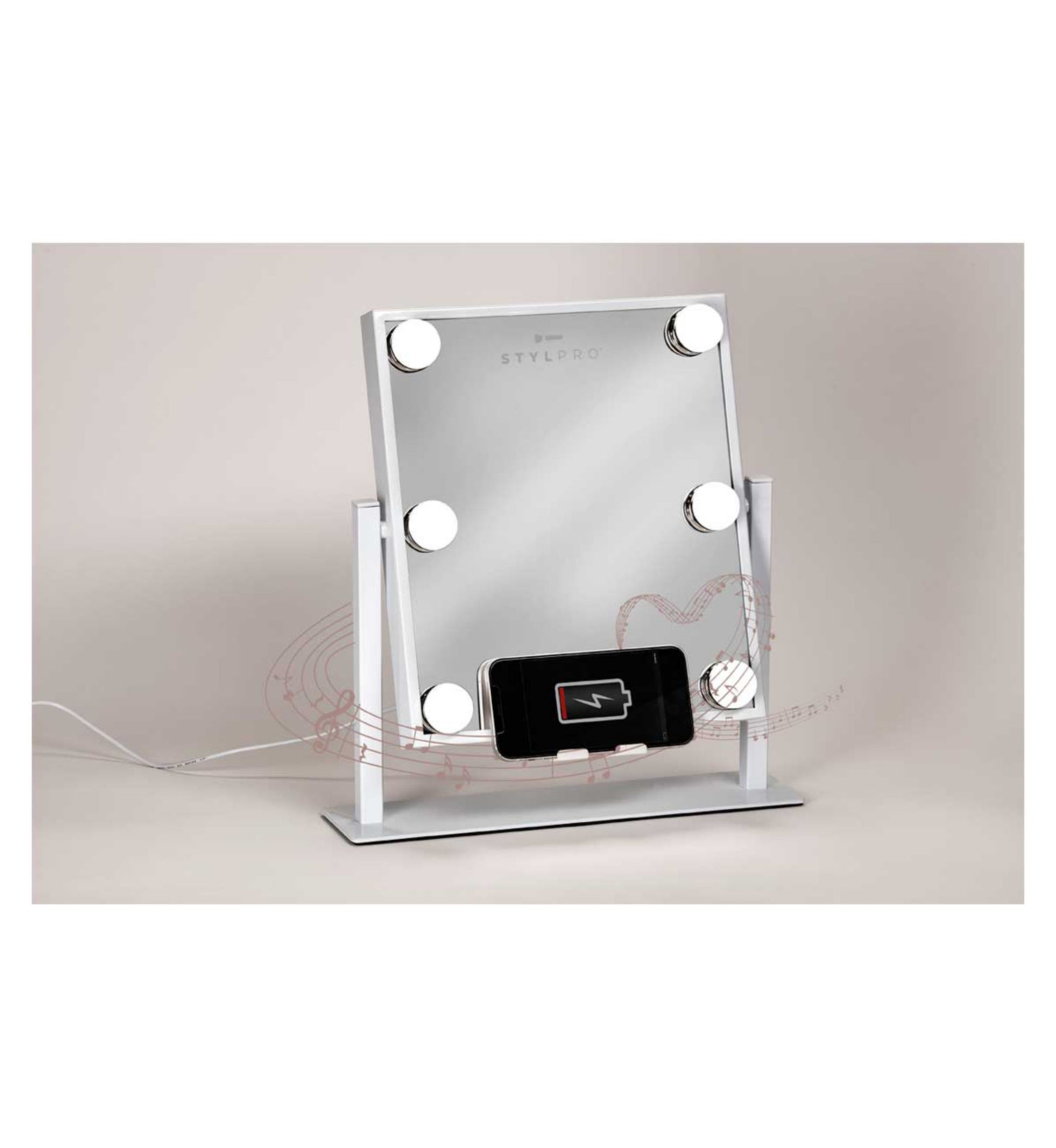 Create the ultimate getting ready experience with the STYLPRO Glam & Groove Hollywood Vanity Music Mirror. Perfect for getting glam with your friends on a night out or even your morning routine, throw on your ideal pre-drink’s playlist, morning podcast, makeup tutorial and even call or video chat a friend while doing your makeup.