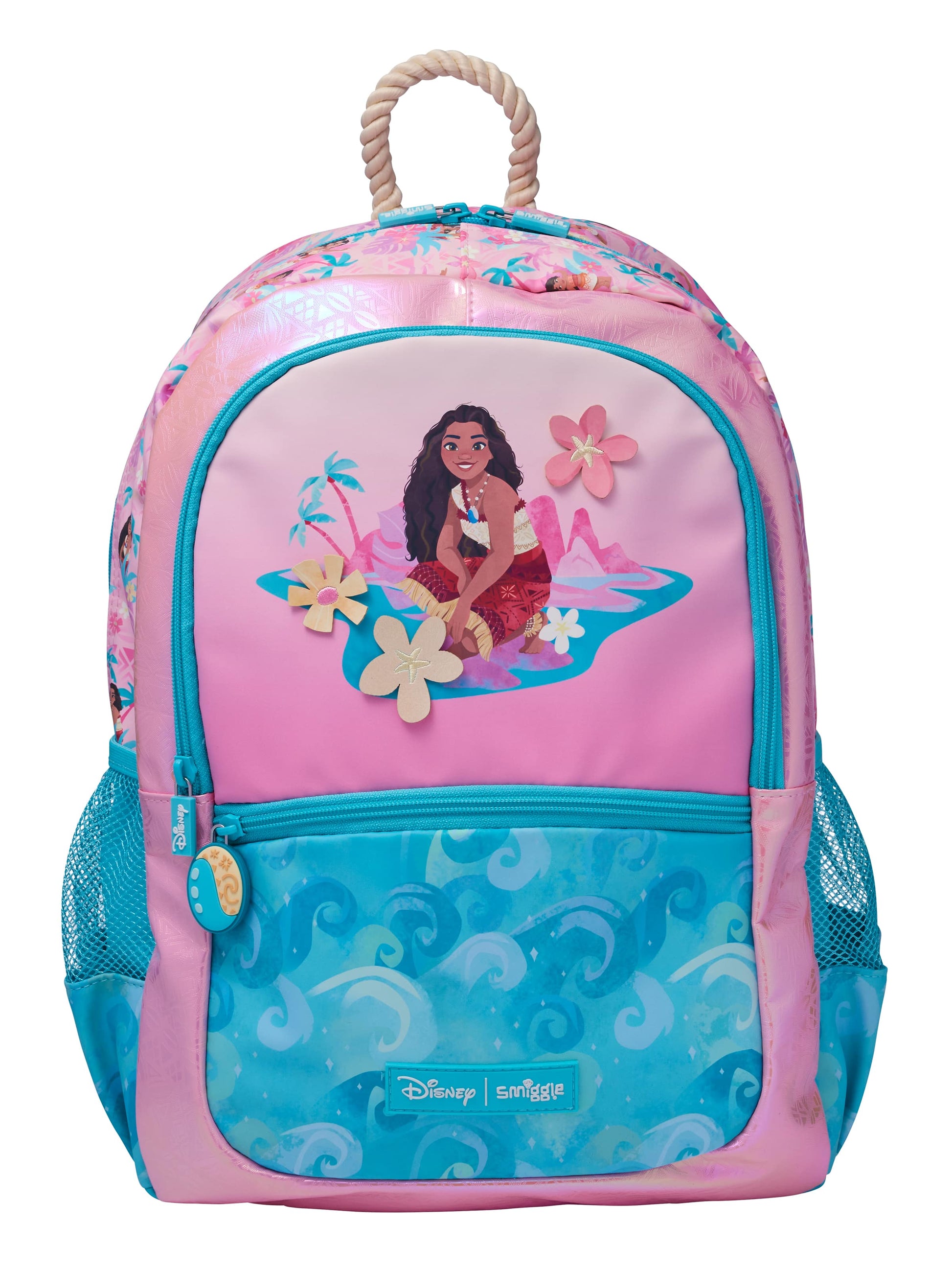 Pack essentials for exploring new horizons with our Moana Classic Backpack! This backpack comes with three zipped compartments, dual drink bottle sleeves, comfy adjustable shoulder straps and an inner laptop compartment for all their essentials. Plus, check out the tropical print graphic print featuring Moana, beautiful pink iridescent panel, Moana applique and character zips. Perfect for any fan of Moana!