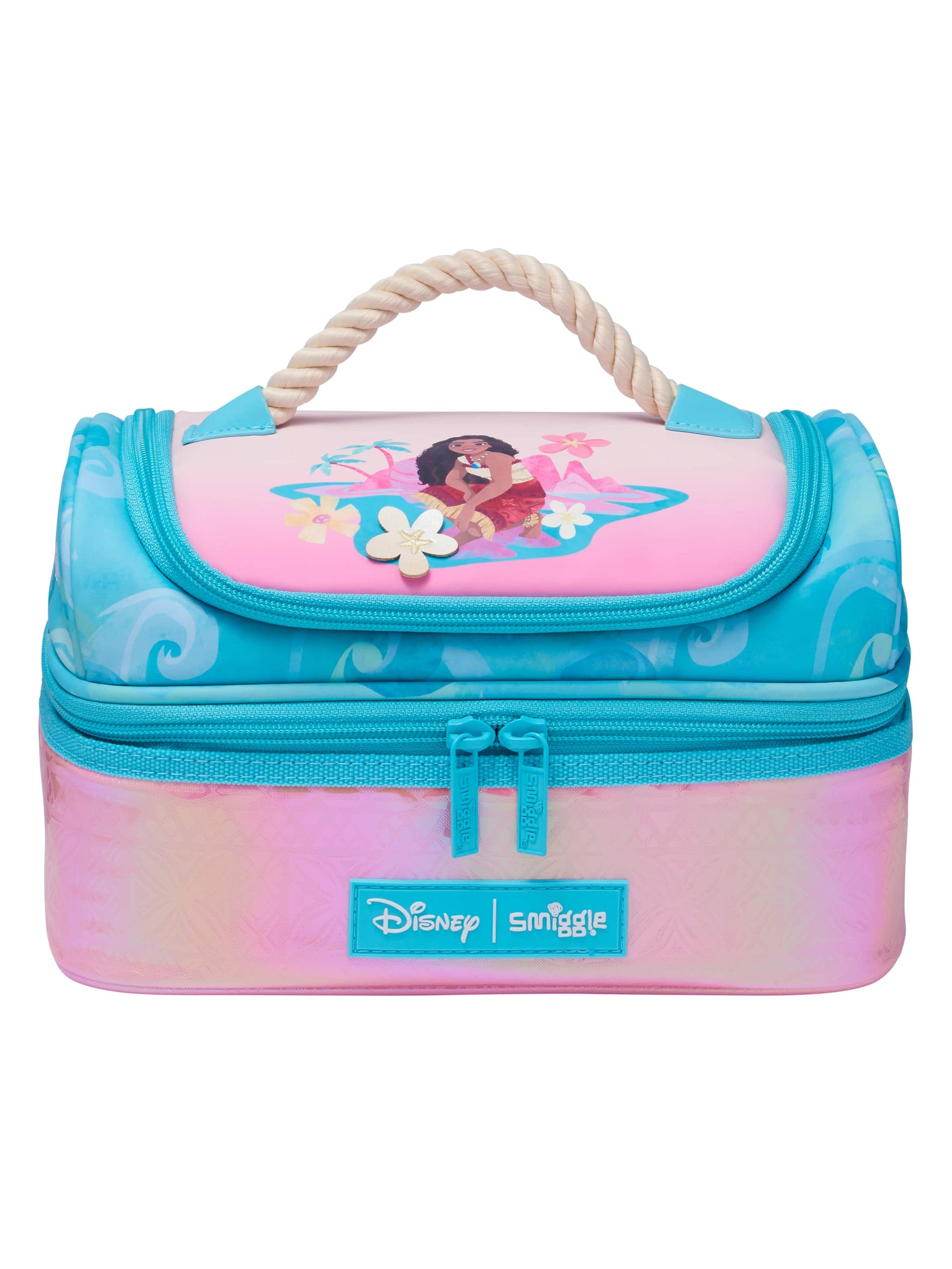 Set sail for a new adventure, snacks at the ready with our Moana Double Decker Lunchbox. With a two tiered design, store snacks at the top and lunch at the bottom for a perfectly balanced lunch. Plus, the insulated and BPA free lining helps keep lunch fresh for when hunger hits! Check out the fun tropical graphic print, beautiful pink iridescent panel and woven carry handle for a premium finish.