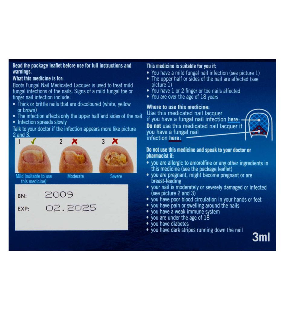 Boots Fungal Nail Medicated Lacquer is used to treat mild fungal infections of the nails. Signs of a mild fungal toe or finger nail infection include: