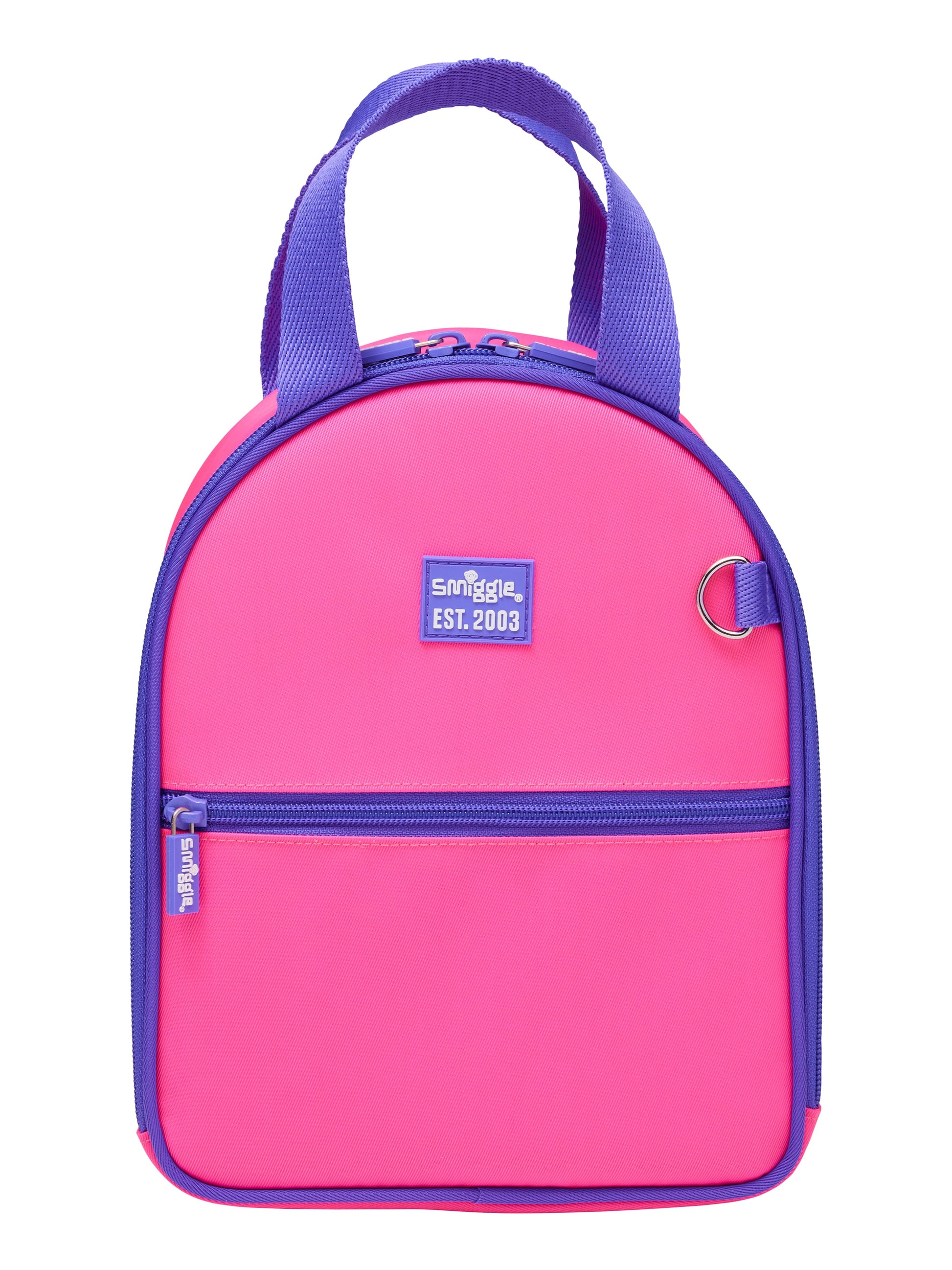 Protect lunchtime goodies with our Neon Splice Arc Lunchbag. The BPA free lined main compartment keeps food fresher for longer, ready for when the hunger hits! The perfect travel companion, this lunchbag features woven top handles for easy carrying and backpack straps for hands-free exploration! Plus, the included D ring allows Smigglers to personalise it with their favourite keyrings and name tag.