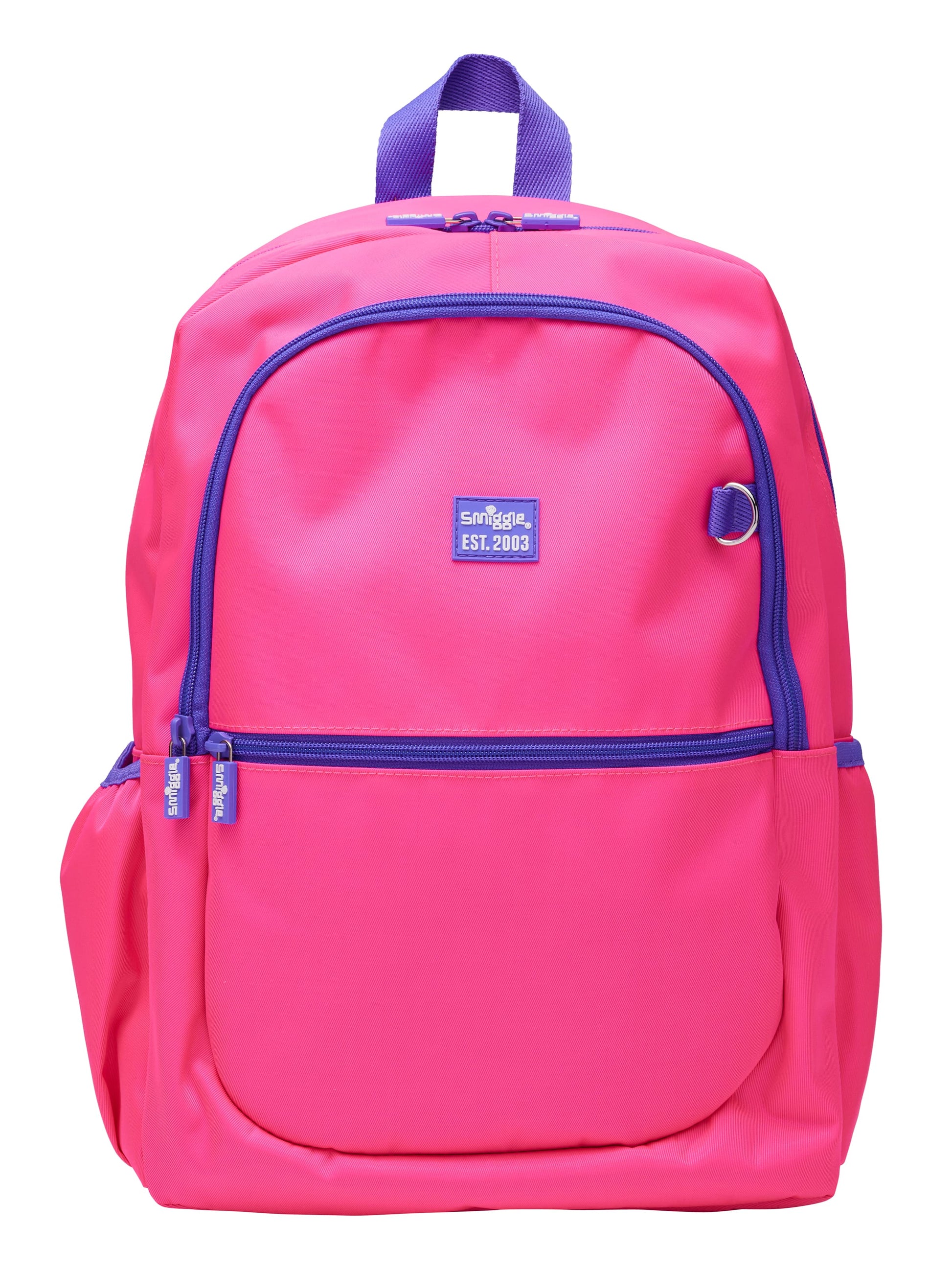 Pack essentials for school and adventure with our Neon Splice Classic Backpack! This backpack has three zipped compartments, dual drink bottle sleeves, comfy adjustable straps and an inner laptop compartment. Complete with the bold and bright colours, this backpack is perfect for any Smiggler!