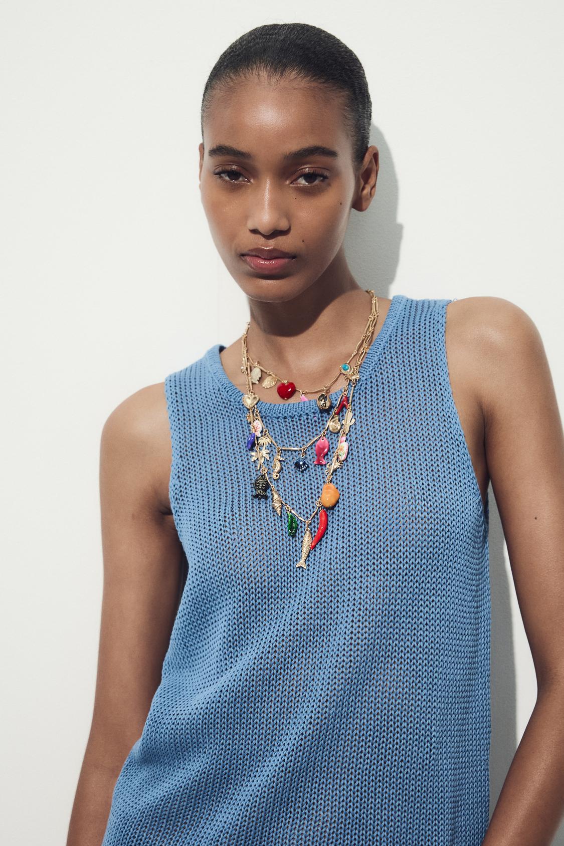 Pack of three metal piece necklaces. Charm pendants in different shapes, sizes and materials. Lobster clasp fastening.