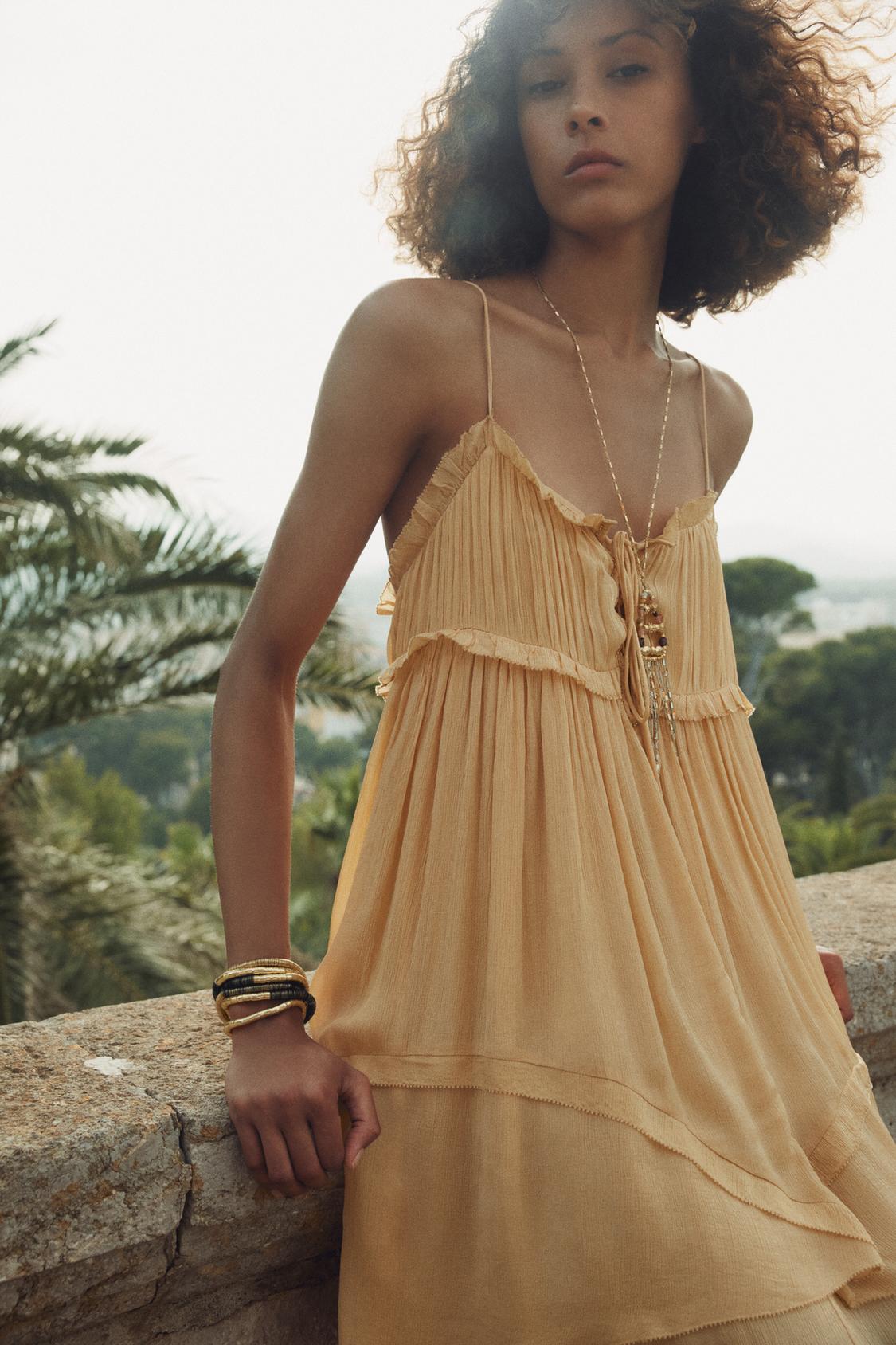 Pack of six elastic bracelets with multiple combined tubular pieces.