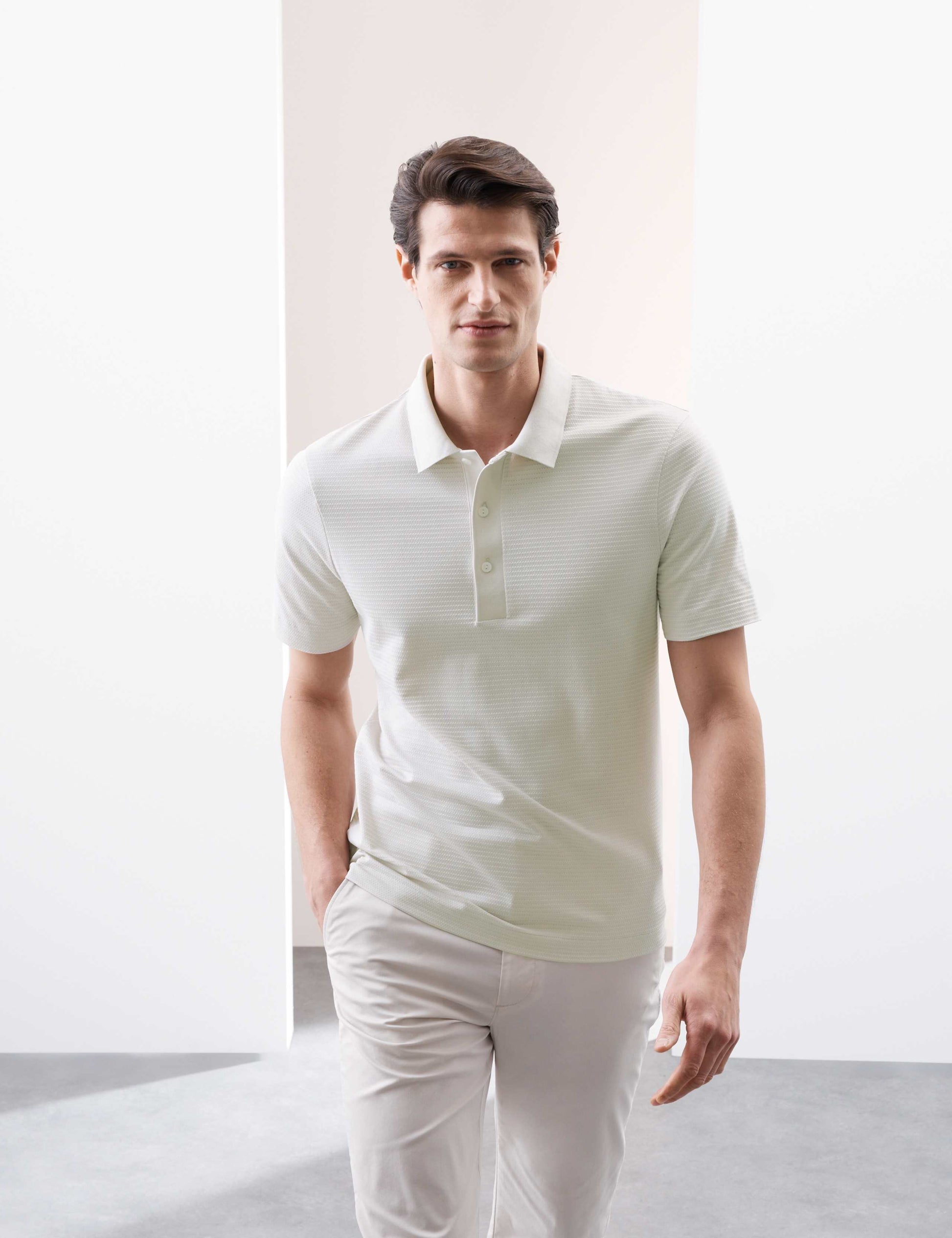 Pure Supima Cotton Textured Polo Shirt - Pale Opaline