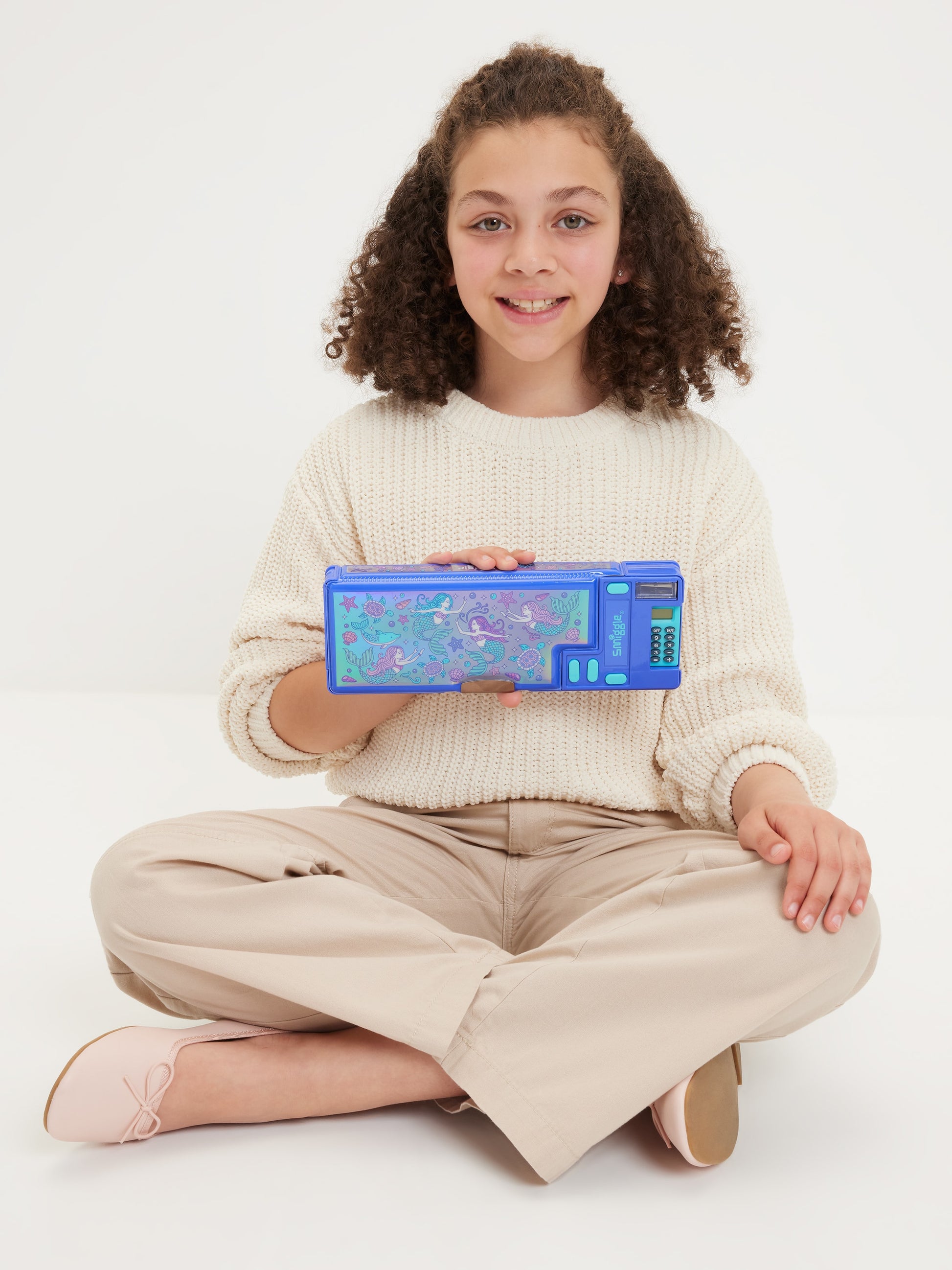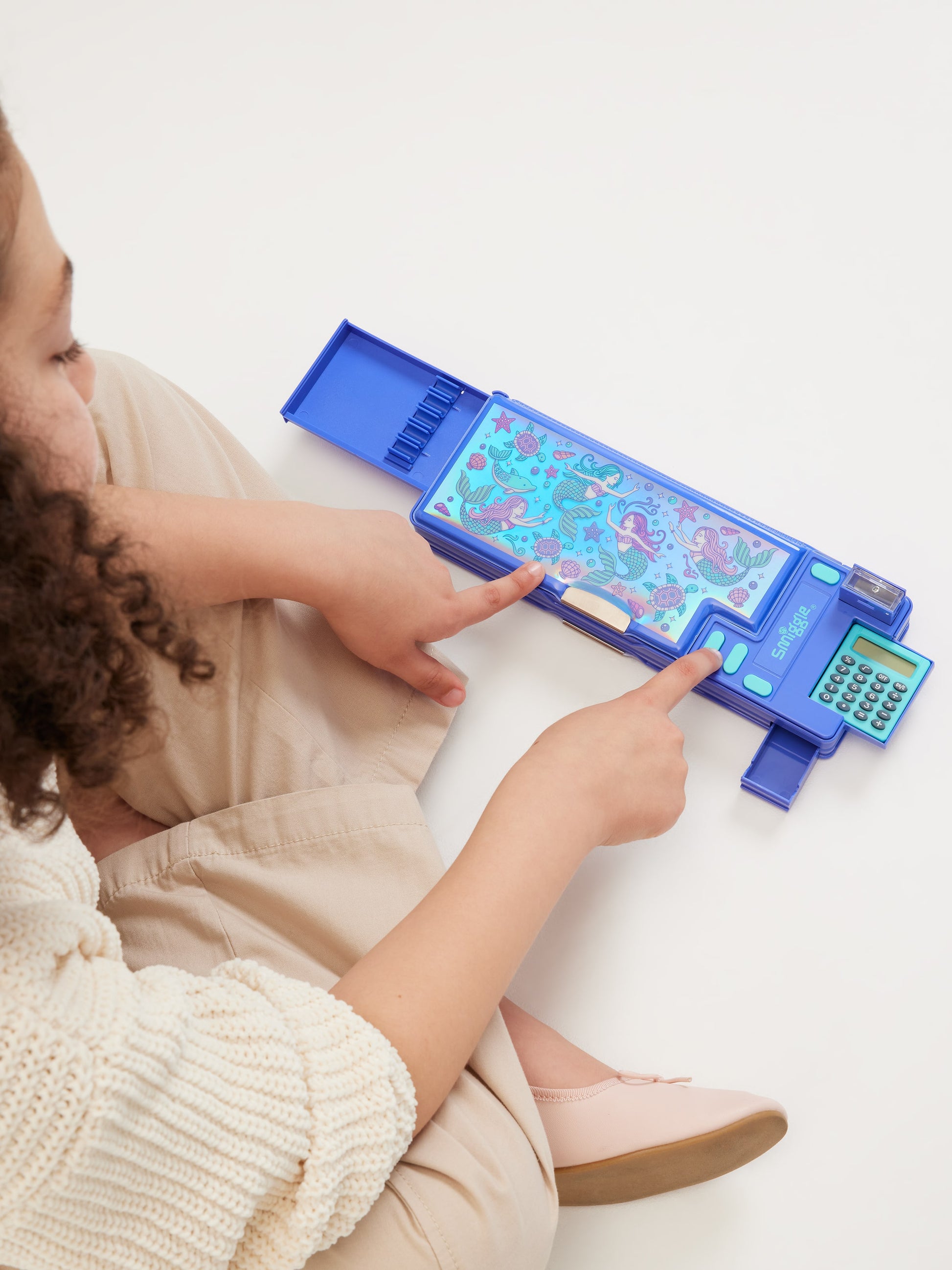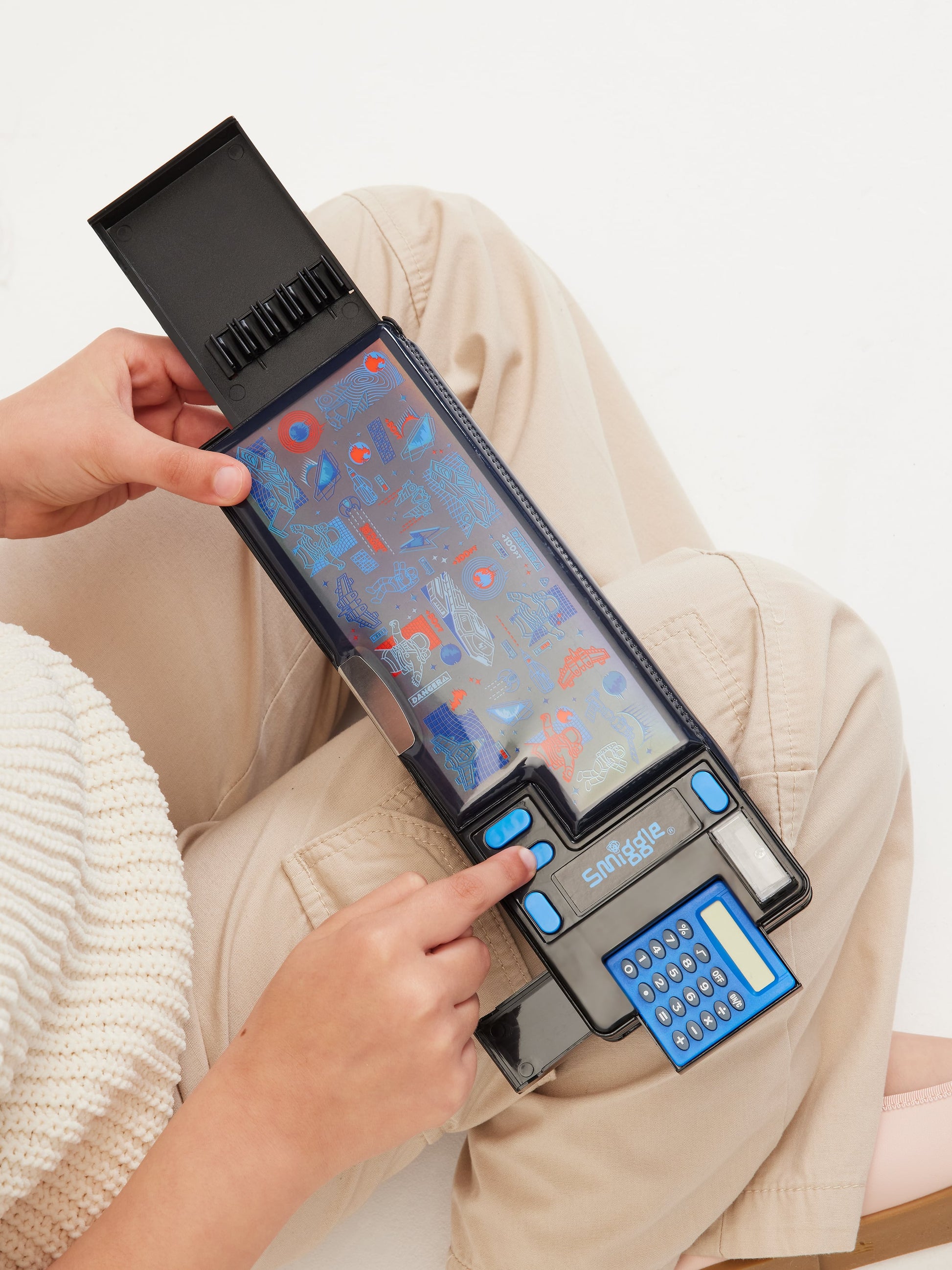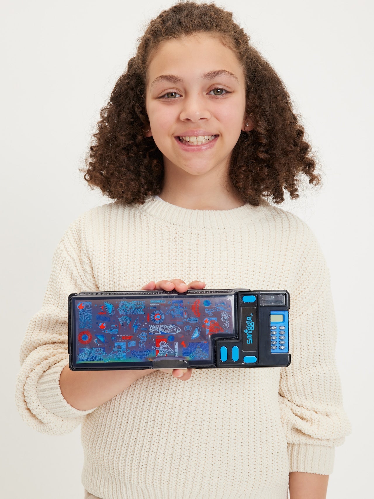 Storage is never an issue with our Rush Pop Out Pencil Case! Press the interactive buttons to reveal secret stationery surprises including a calculator, sharpener and more! There is also plenty of extra space to store Smiggle pens and pencils, plus a slot for a school timetable!