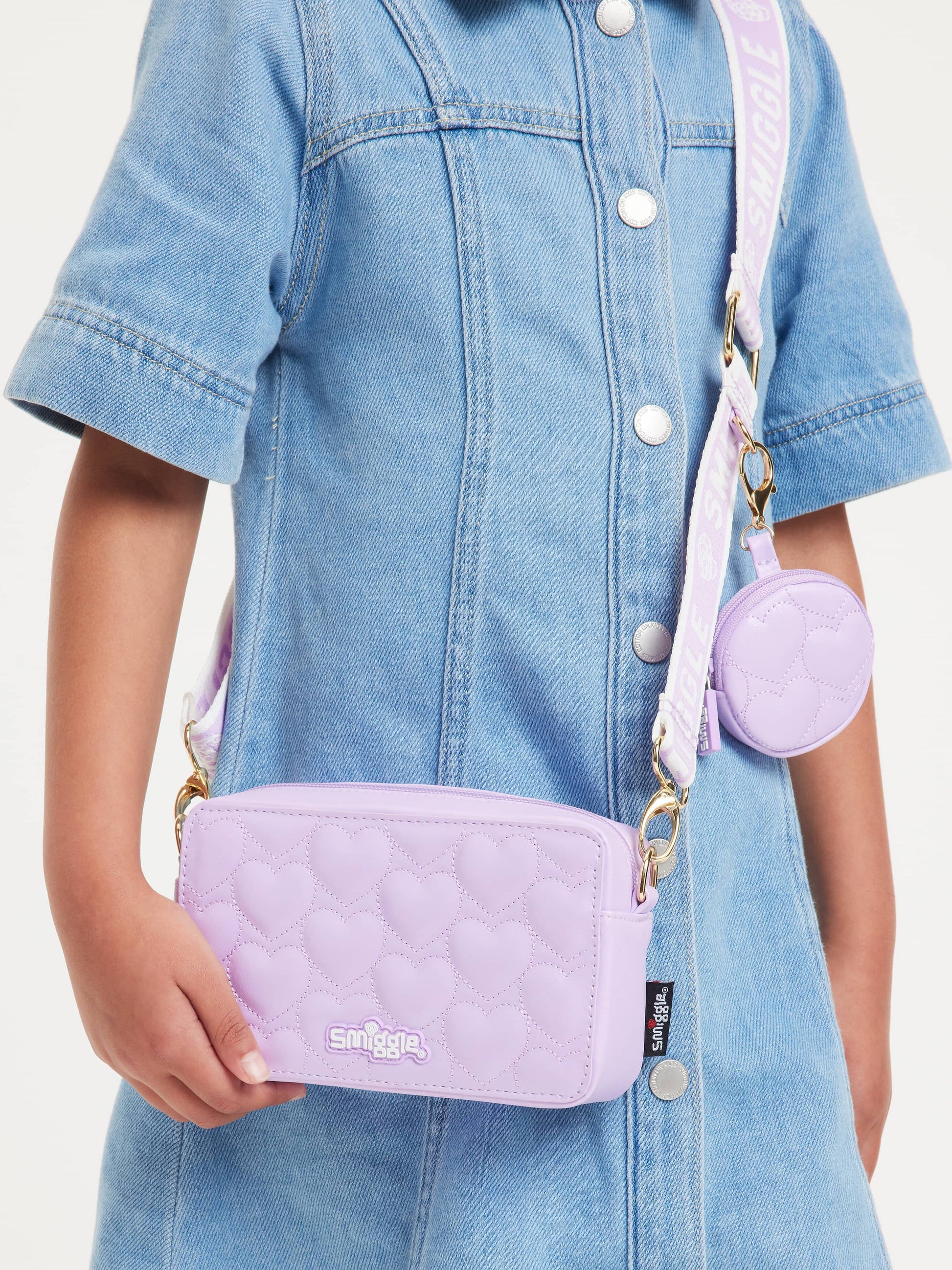 Strut out in style with our Sadie Shoulder Bag! Featuring an adorable Smiggle branded shoulder strap, heart print and detachable coin purse, this cute bag is perfect for carrying essentials on every adventure.