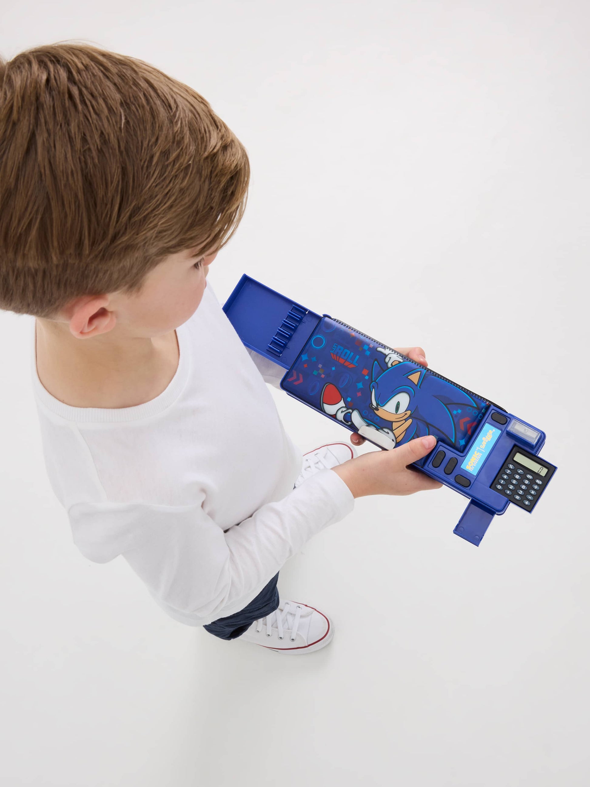 Speed meets style in our Sonic the Hedgehog Pop Out Pencil Case. Featuring a lenticular design, move the pencil case to see the blue blur in action! Press the interactive buttons to reveal secret stationery surprises including a calculator and sharpener. Open up for plenty of extra space to organise Smiggle pens and pencils, plus a slot for a school timetable.