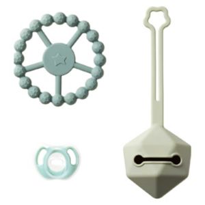 A 3-piece gift set of stylish soothing staples to calm, carry and chew. Settle baby with our original Ultra-light soother, and use the coordinating case to keep their dummies clean and close-by when on the go. When teething starts, the chewable teether helps relieve their sore gums.