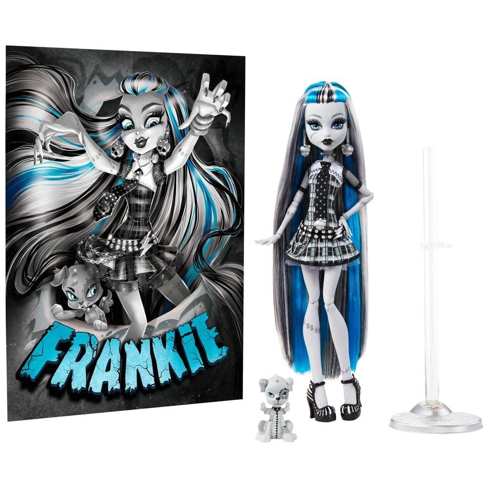 Contents: x1 Frankie Stein doll, x1 mini movie poster, x1 pet, x1 life-sized movie poster, x1 doll stand