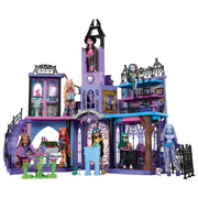Contents: 1x Monster High Doll House, 1x Dining Table Set, 1x Cafeteria Counter, 2x Desk Chairs, 1x Podium, 1x Gate, 30+ Storytelling Accessories