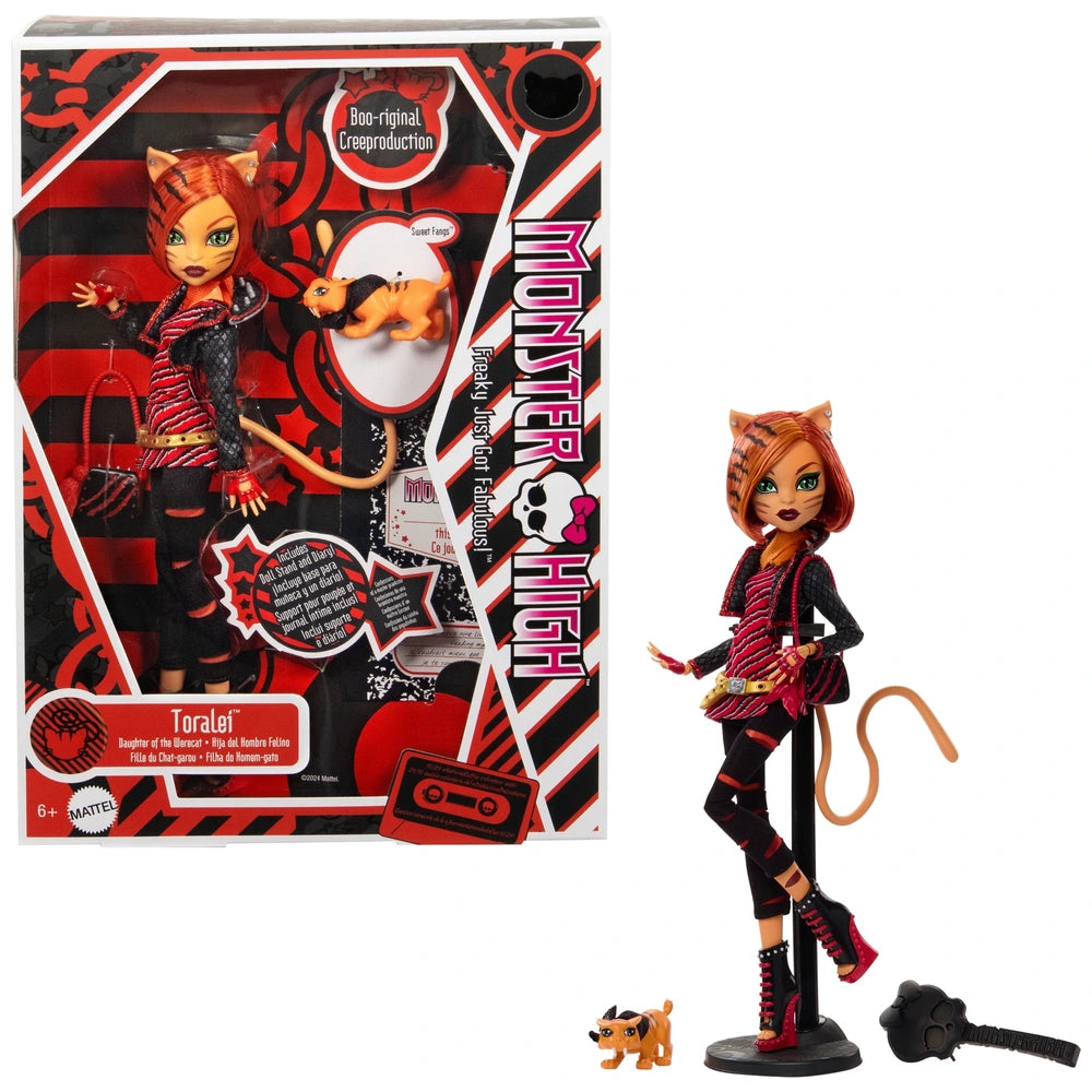 The minds behind Monster High and Wednesday have collaborated to create a chillingly beautiful line of dolls inspired by the hit television series! A striking vision in her trademark black, this Wednesday Addams doll reimagines the show's titular character and her iconic gothic style through a Monster High lens. Dressed to distress in all black from head to toe with a tie, statement belt and spiderweb tights, she drips dark charm in her Nevermore Academy uniform. Her chunky platform boots feature her cello on one heel and her beloved scorpion Nero on the other.