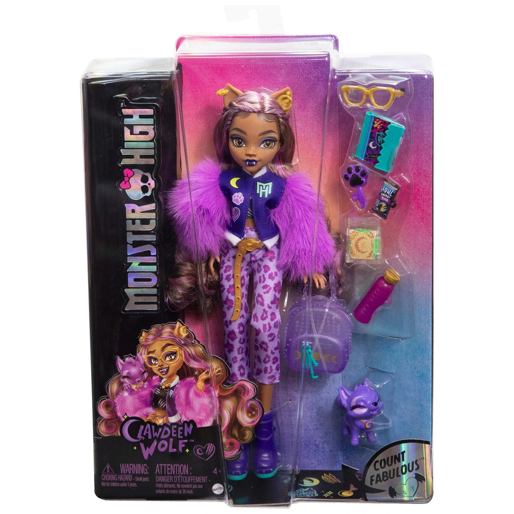This Monster High doll makes quite an i-claw-nic werewolf! Clawdeen Wolf shows off her furrocious fashion sense in a head to toe purple lurk. Her creeptastic canine Crescent is ready to join in on the fun, too!