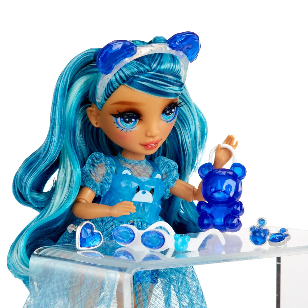 The Rainbow High Creative Crystals Fashion Doll Skyler comes with everything you need to make 5 DIY crystal fashion accessories! Make sunglasses, earrings, purse and a headband crystal accessory for your doll. And make a crystal ring for you! Skyler is dressed in her signature blue from head to toe with lots of sparkles. This articulated doll has gorgeous, detailed features in her fashion, beautiful long blue hair, long eye lashes and glass eyes.