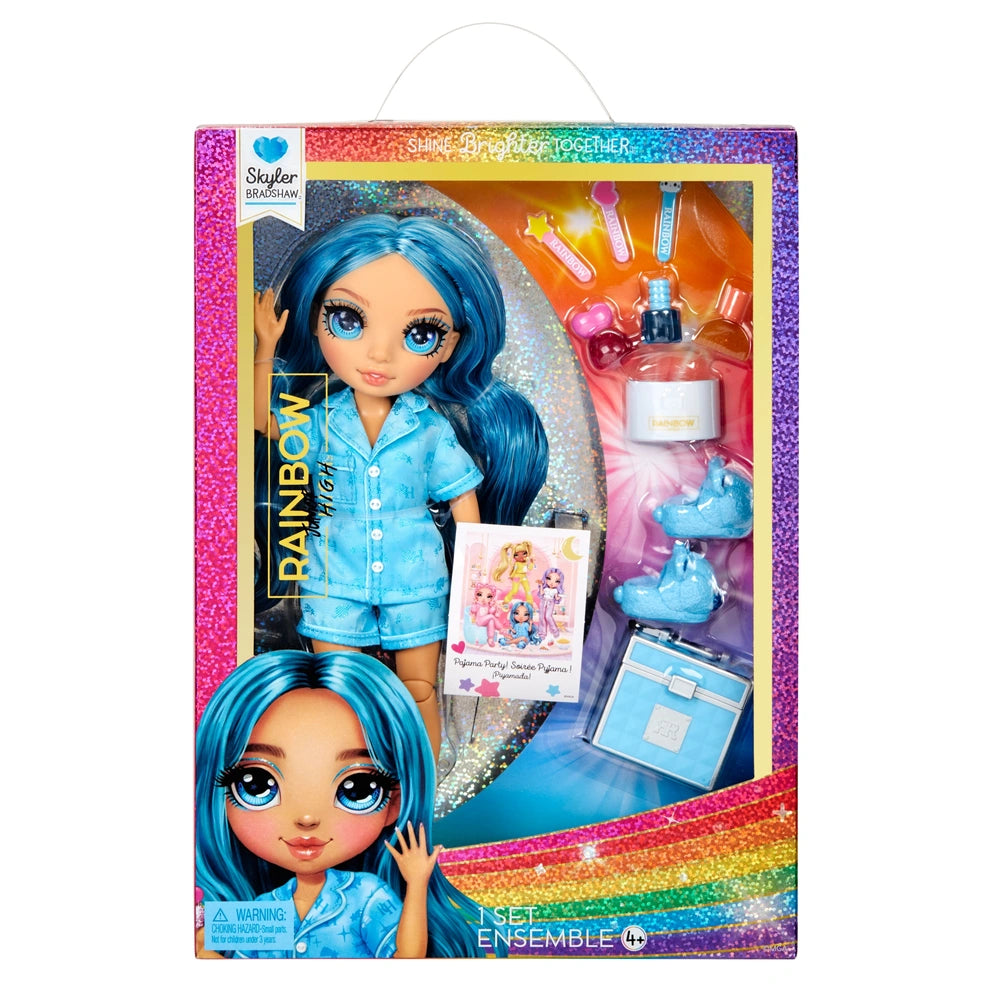 With a blue design and lots of matching accessories, this Junior High Skylar doll is ready for any sleepover party, play date or school trip. In fact, all the Junior High fashion dolls are getting ready for an exciting slumber party (each sold separately)! Chat all night long with your best friends, laugh, listen to music and take part in the perfect overnight beauty program.