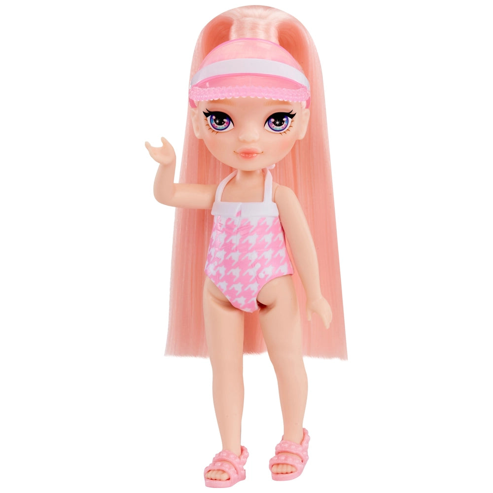 Get ready for the ultimate summer party fun with the Rainbow High Pool Day with Littles Doll Blush playset! This delightful set is packed with everything you need for a sunny day of imaginative play. Features a sparkling pool with a vibrant rainbow slide and a ladder to climb for hours of fun. Your exclusive doll, Blush Parker, can dive all day long in style with her adorable pink swimsuit and removable shoes.