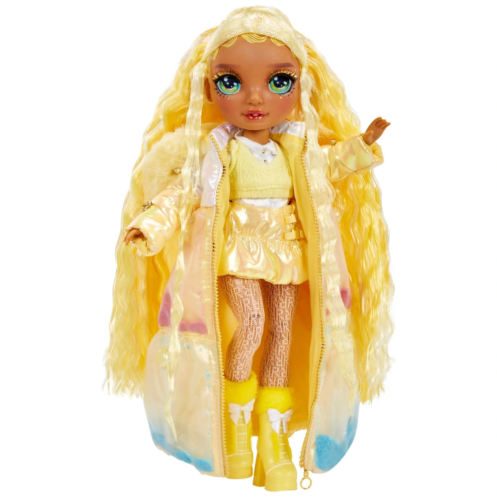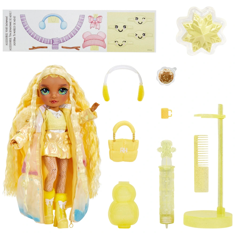 Contents: 1x Rainbow High Winter Wonderland Sunny Madison Doll; 10x Play Accessories