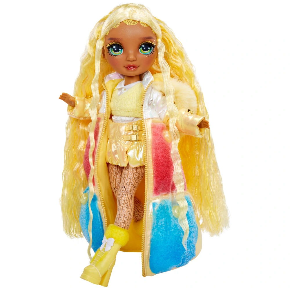 Discover wintertime magic with the Rainbow High: Winter Wonderland Fashion Doll – Sunny Madison! Beautifully styled as a fully posable doll with winter-themed fashion, Sunny is dressed and ready to explore the winter wonderland of Rainbow World, with magic snow in her outfit to add an extra touch of winter enchantment!