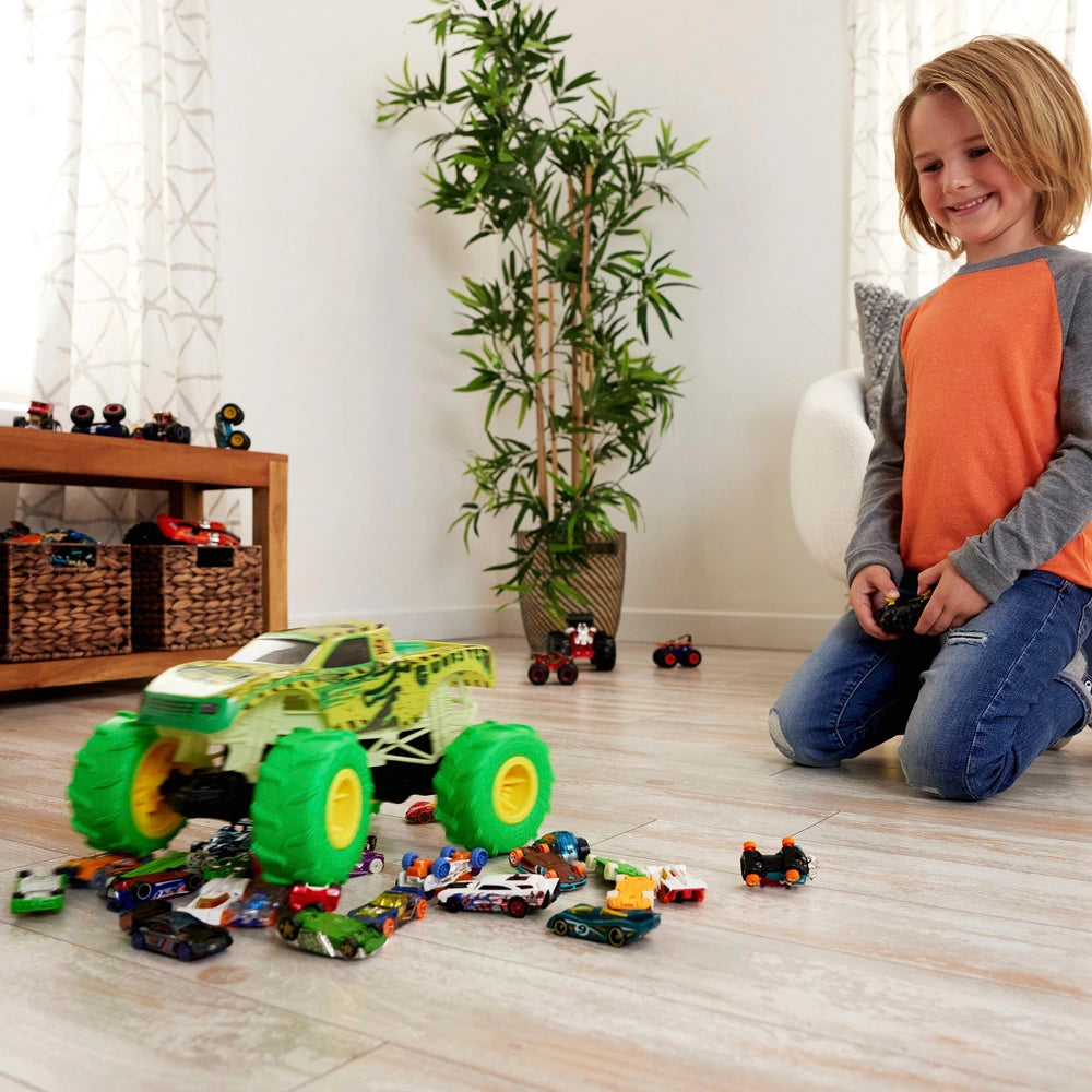 Get ready for fantastic driving fun with the Hot Wheels Monster Trucks Gunkster Glow in the Dark RC! This remote-controlled car is not only an exciting companion by day, but also a shining hero in the dark!