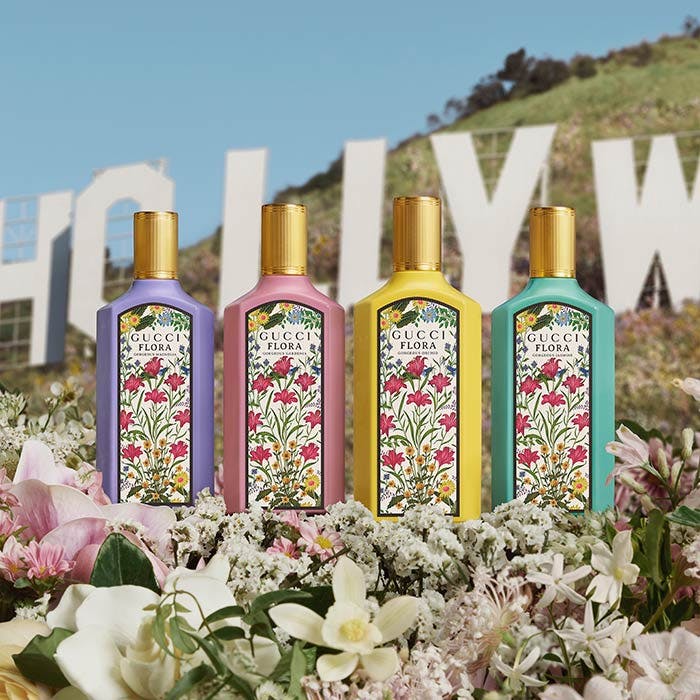 Escape into a joy-fuelled fantasy land with Gucci Flora. Evolving into a new delicious Eau de Parfum, floral yet delicately sweet, Gucci Flora Gorgeous Gardenia relaunches in a new campaign filled with flowers and fluffy animals. A signature floral scent for all free-spirited women full of positive energy. The perfume is built around the Gardenia flower, admired since the dawn of time for its splendour and said to be used in elixirs and magical potions.