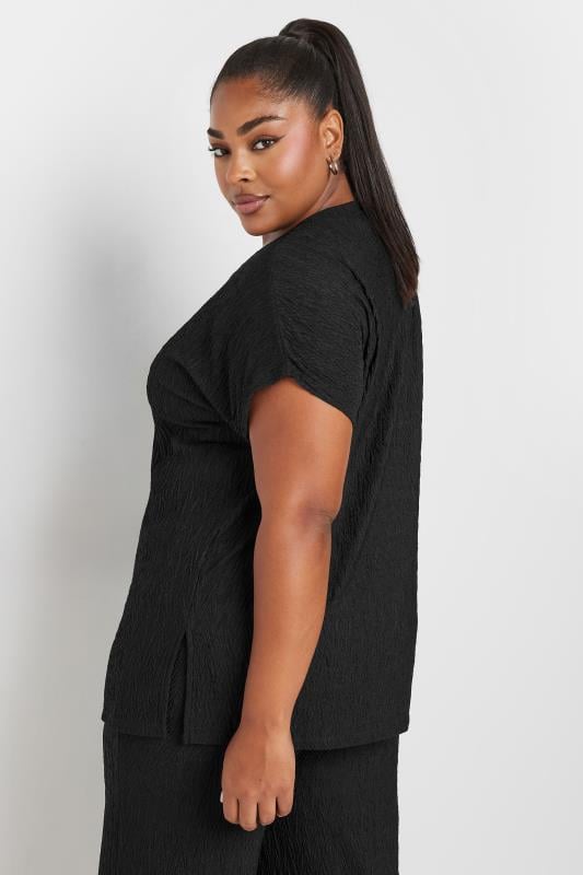 YOURS Curve Black Crinkle Plisse T-Shirt